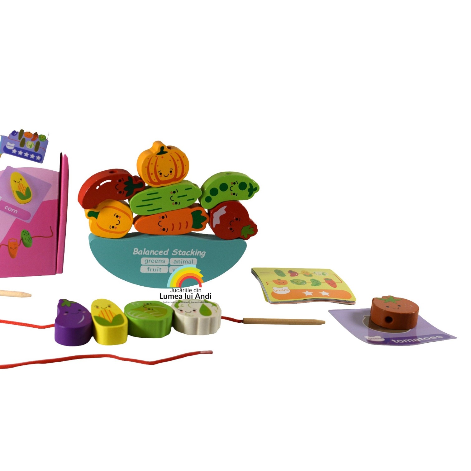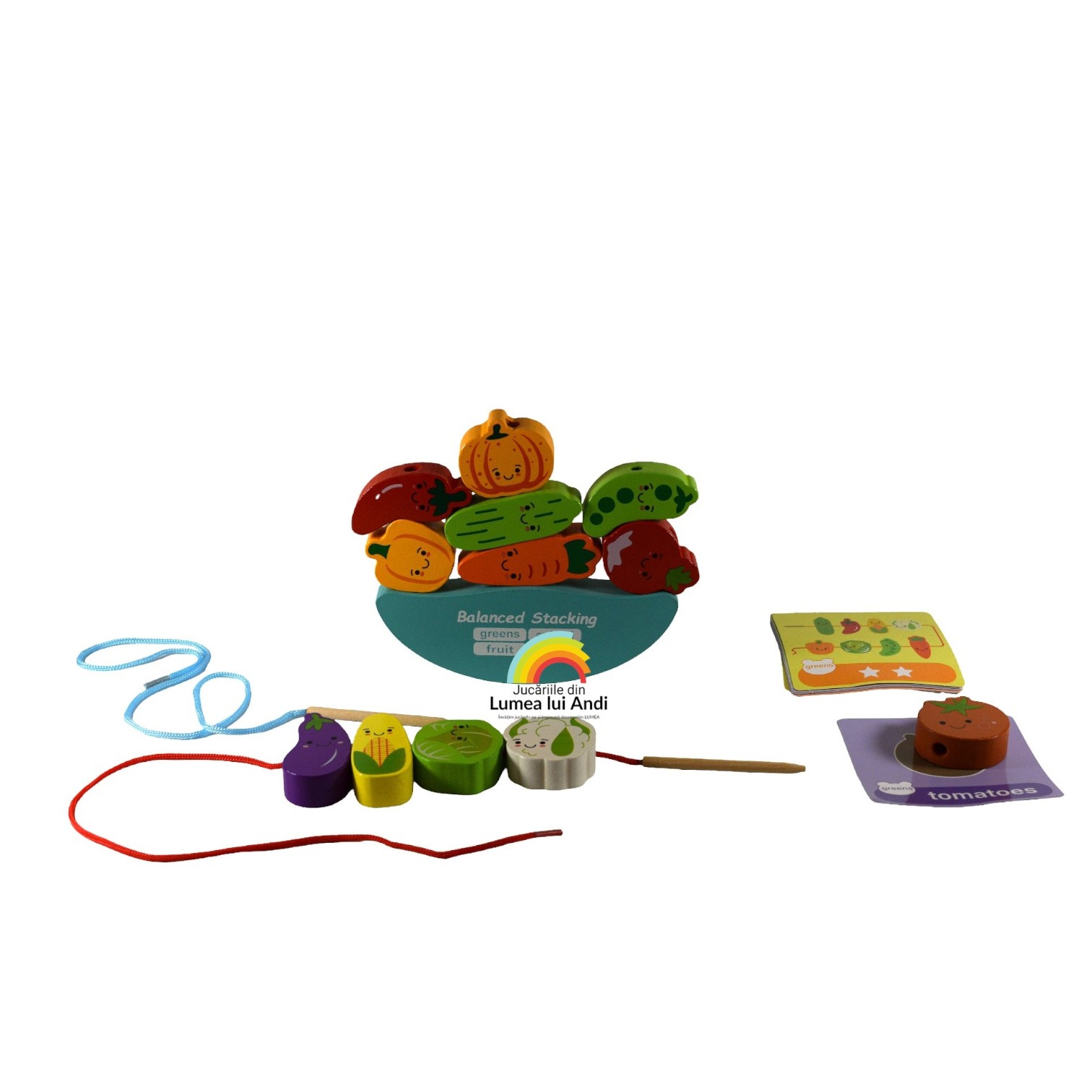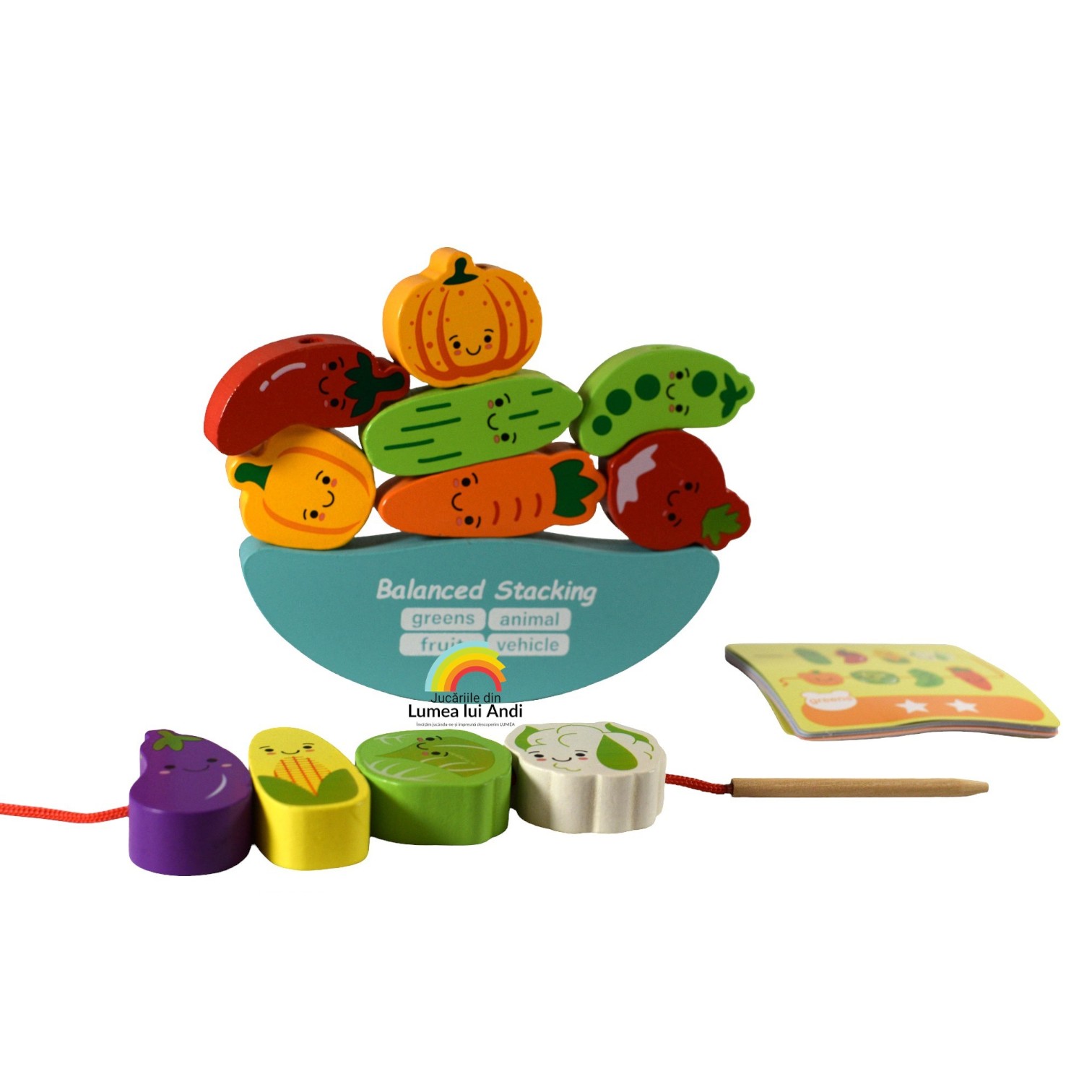 Balanță de șnuruit și stivuit din lemn, model cu legume