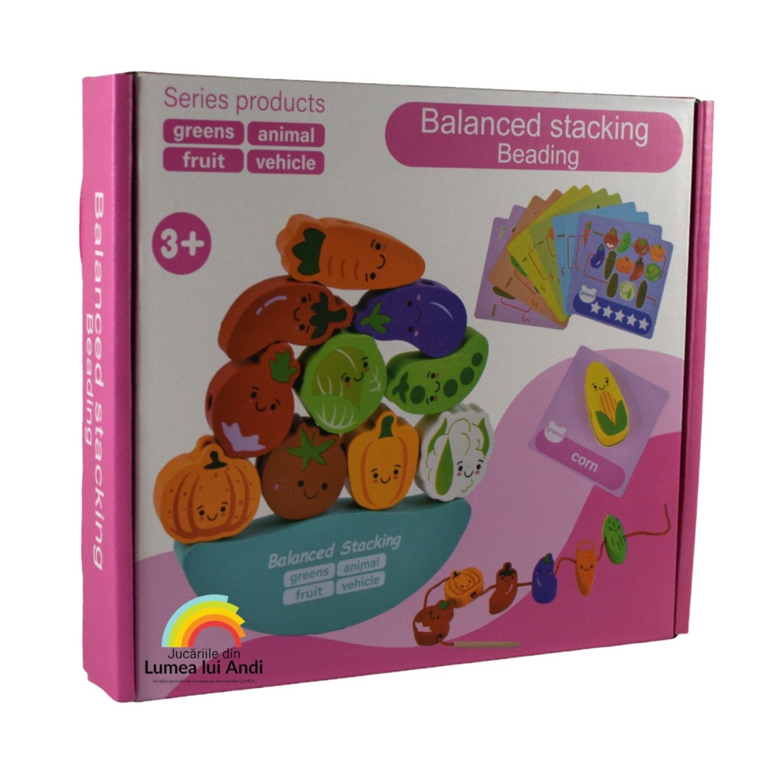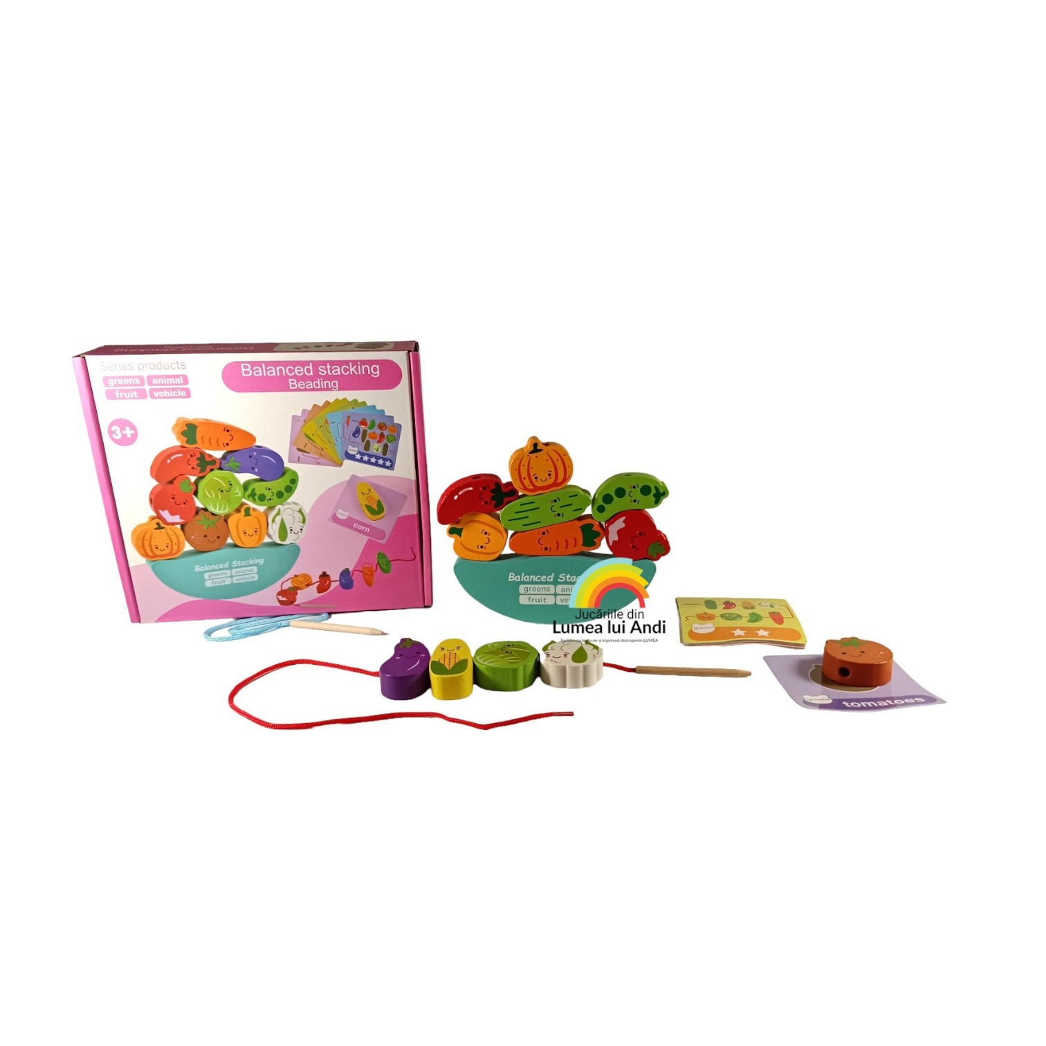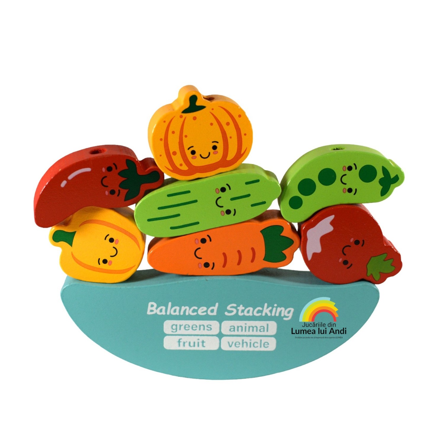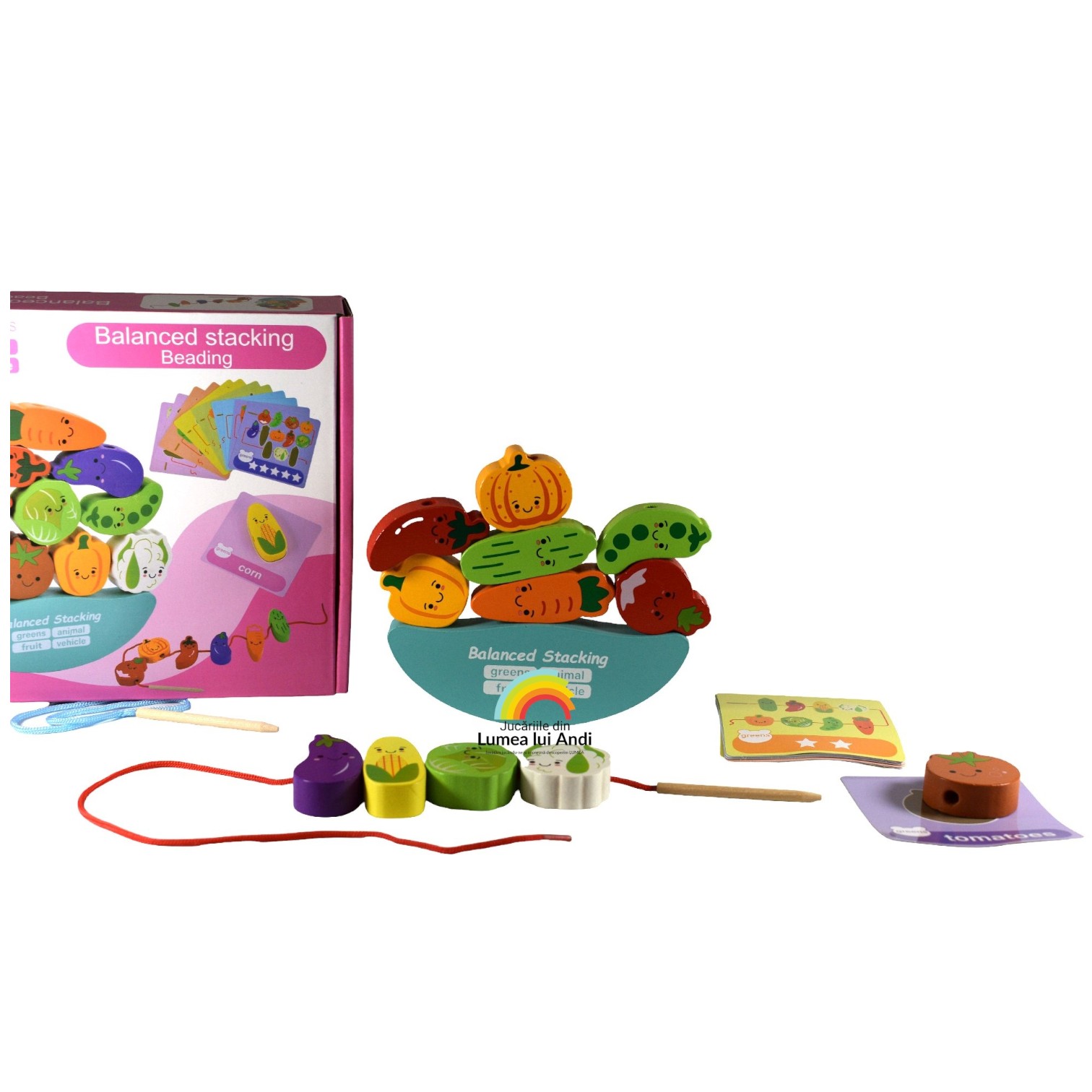 Balanță de șnuruit și stivuit din lemn, model cu legume