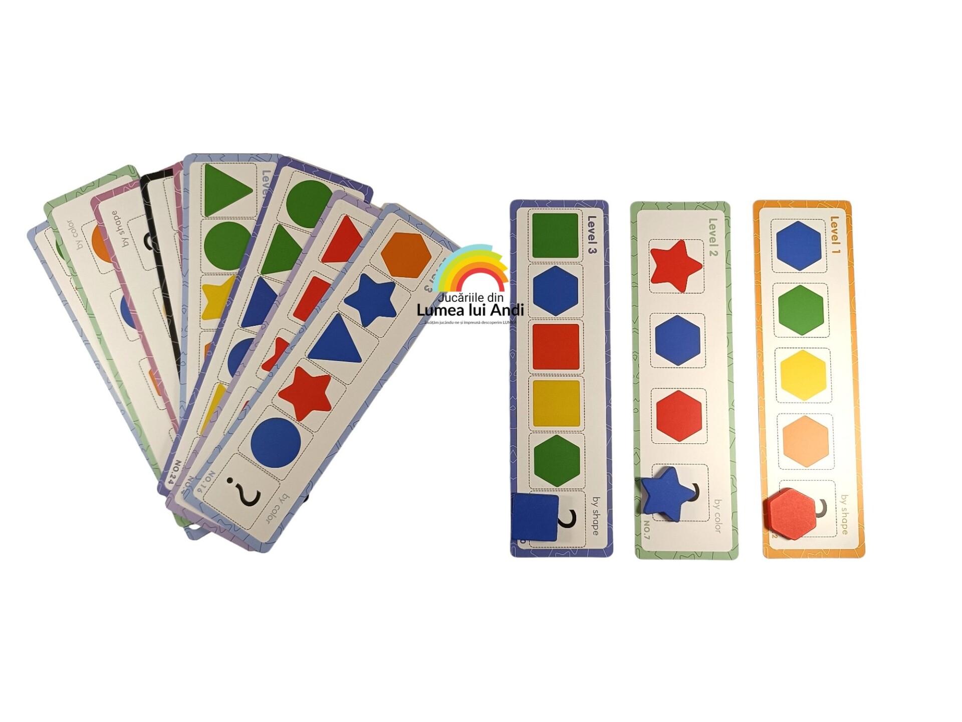 Acest joc pune accent pe activitățile de tip asociere și sortare după mai multe criterii, antrenează abilitatea de a observa, ajuta la formarea și consolidarea unor noțiuni elementare despre forme și culori.