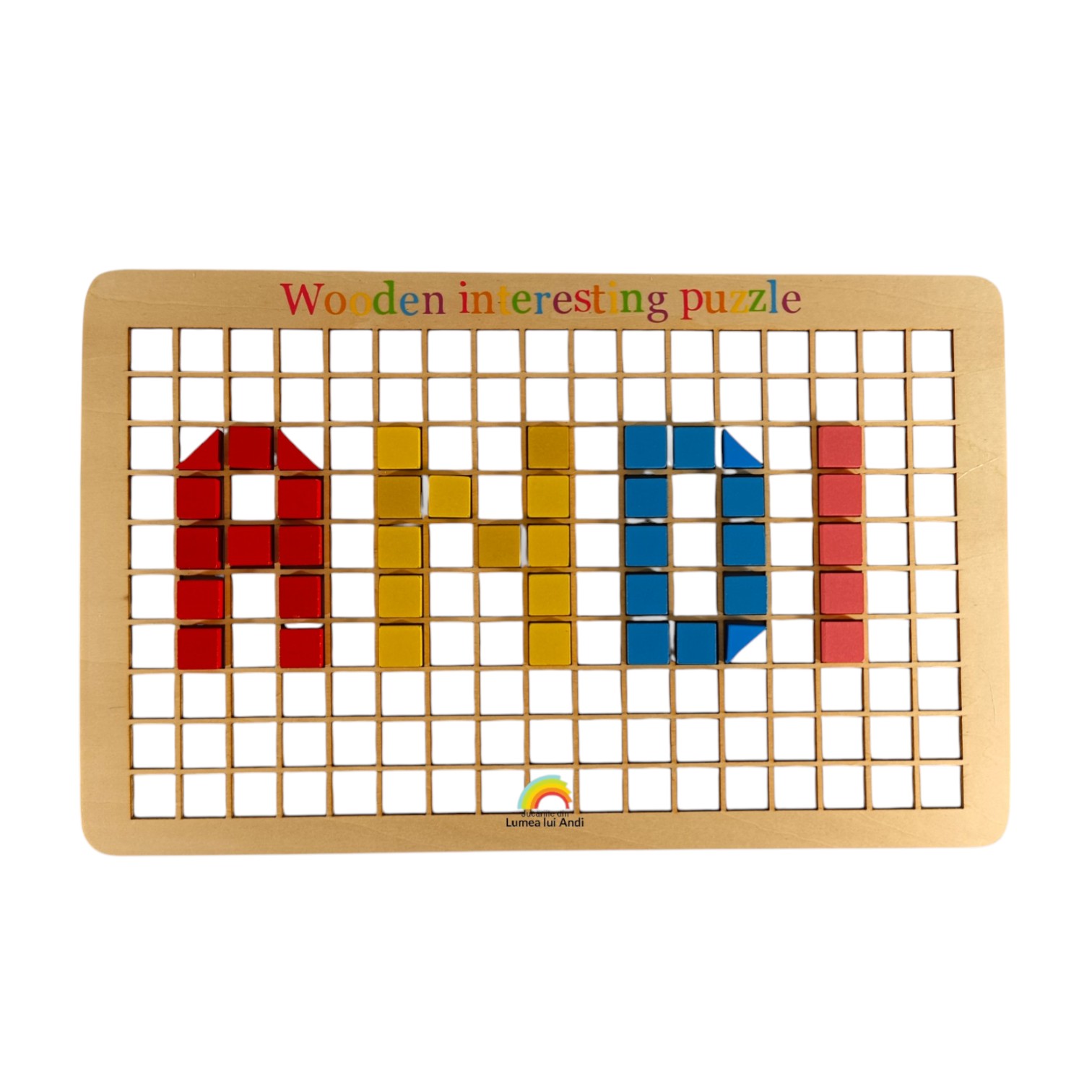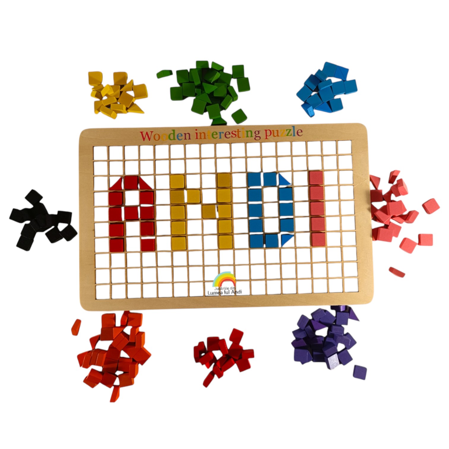 Jocul conține 200 de piese din lemn, de dimensiuni și forme diferite, pe care cei mici le pot folosi pentru a crea diverse modele. Astfel pot porni de la formarea imaginilor simple, cum ar fi o floare sau o literă mare și până la imagini de dificultate mai ridicată: fluture, ursuleț, etc. Cei mici trebuie să reproducă pe tabla de joc modelele de pe cartonașele incluse în set, însă pot să își extindă imaginația creând și proiectând modele unice în funcție de imaginația proprie.