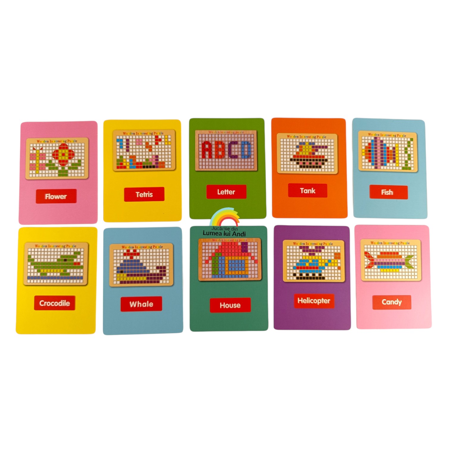 Este un joc de potrivire a culorilor și formelor geometrice care stimulează imaginația și creativitatea celor mici, îmbunătățește coordonarea ochi-mână, gândirea logică, atenția și simțul vizual, fiind un instrument potrivit pentru dezvoltarea abilităților cognitive și motrice prin formarea diferitelor imagini..