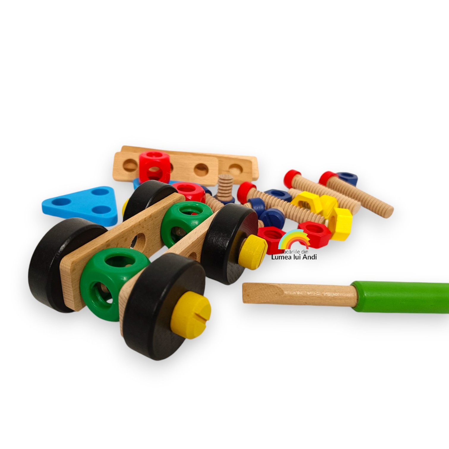 Jucărie educativă pentru asamblat, din lemn și plastic