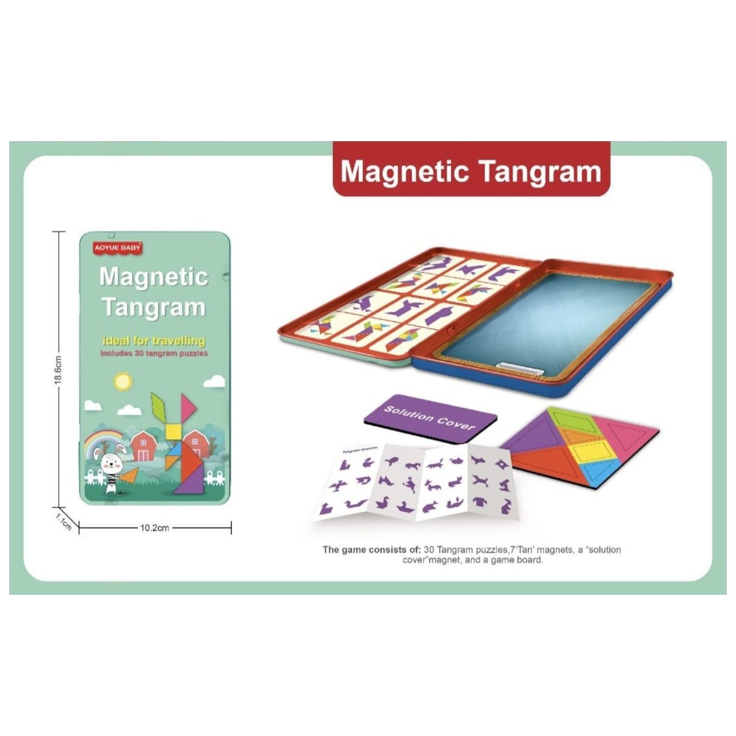Joc de societate magnetic – Tangram (dimensiuni reduse, ideal pentru călătorii)