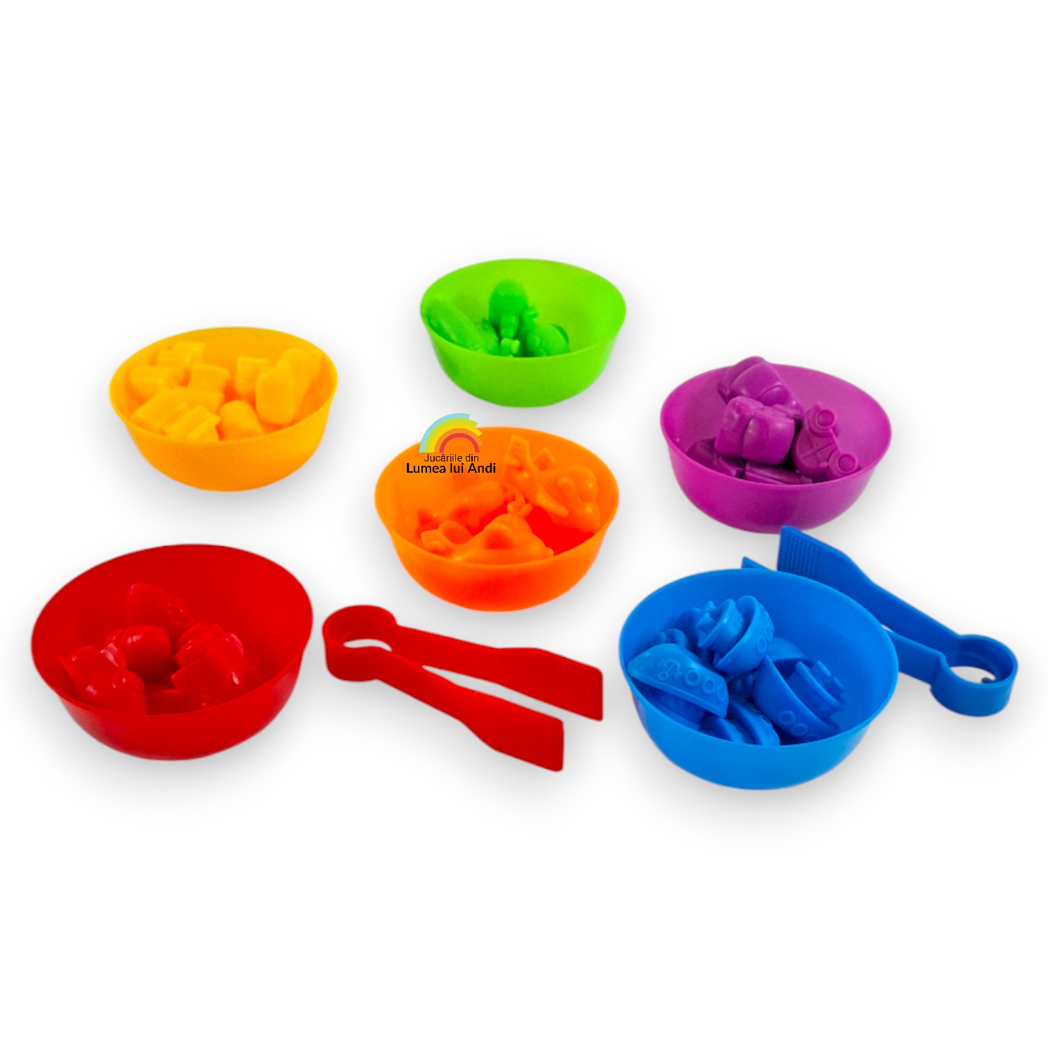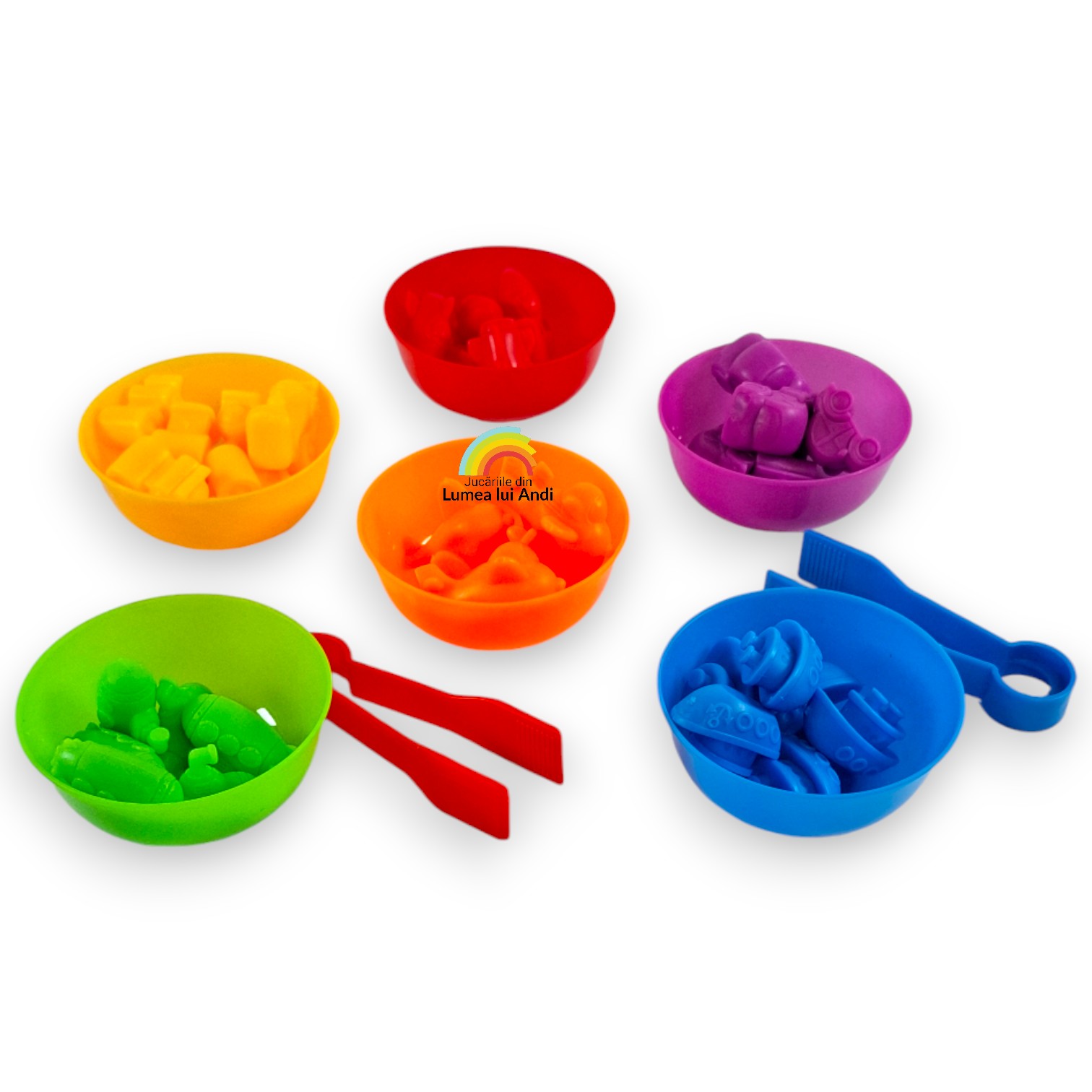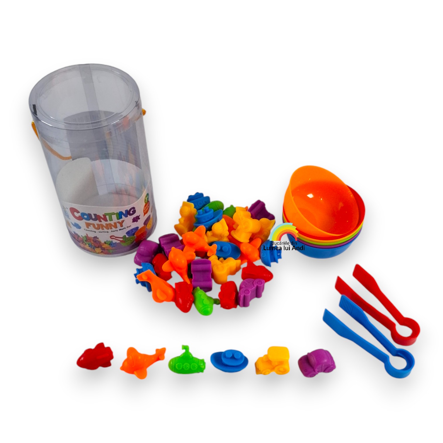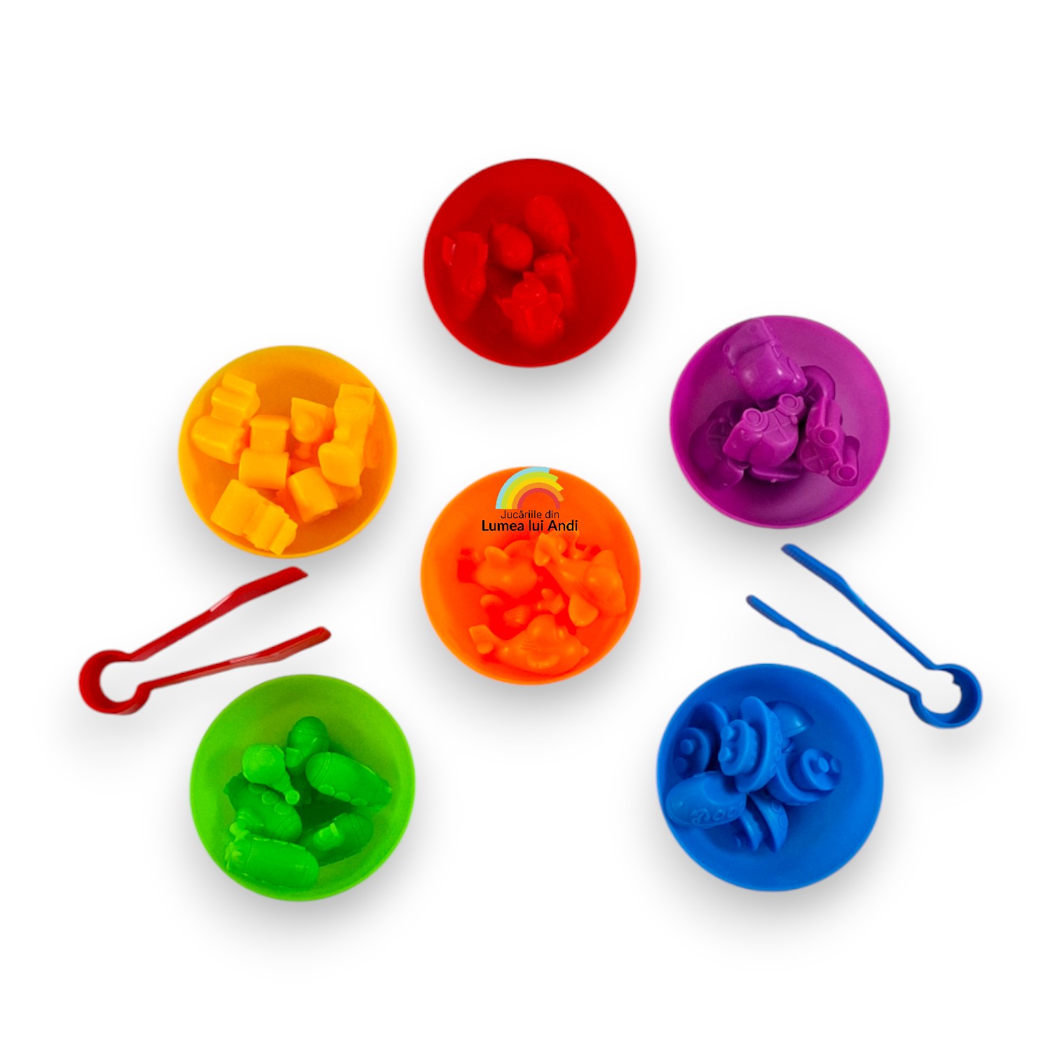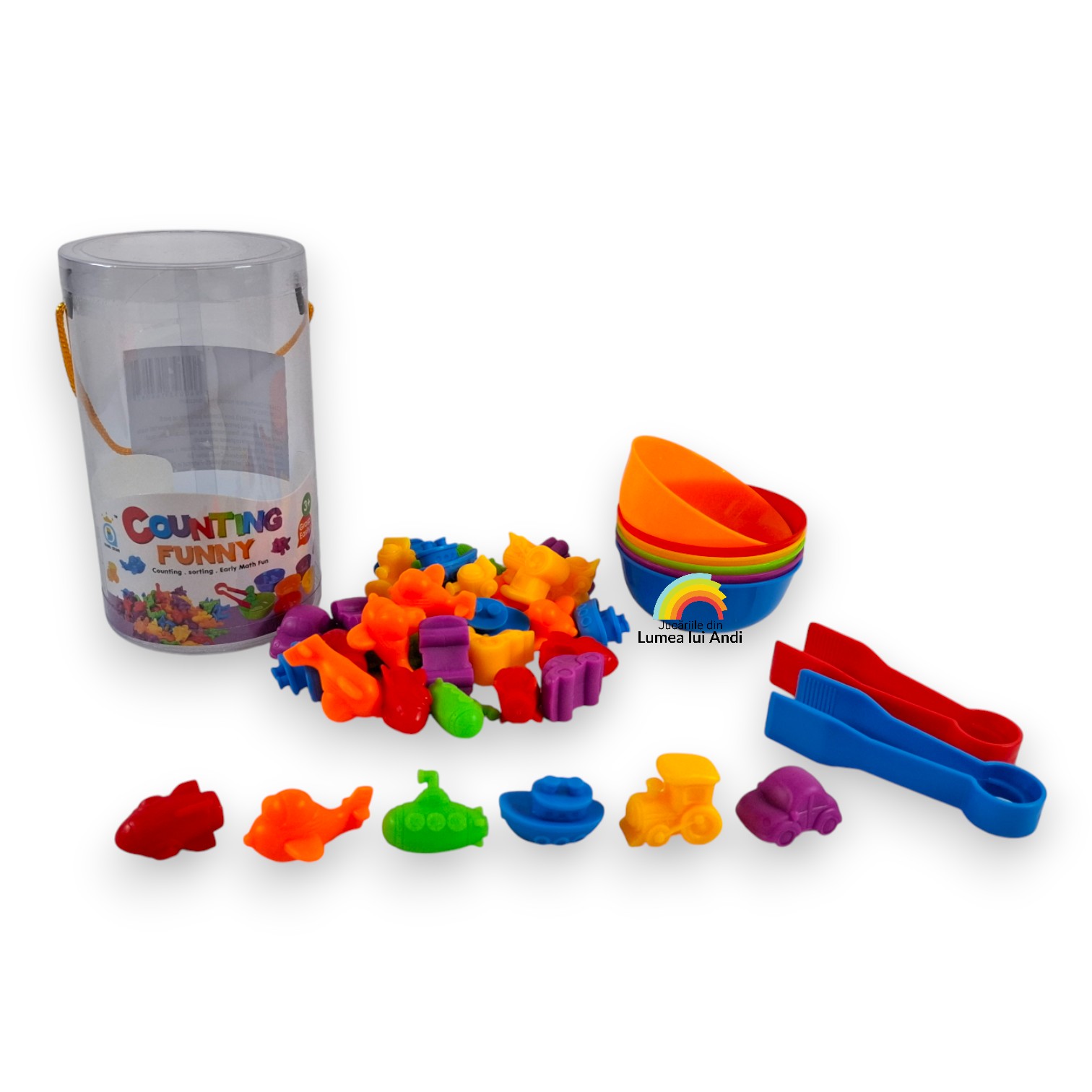 Jocul de sortare culori, asociere și numărat cu 36 de piese este un joc de clasificare pe culori și de numărat. Este un joc care dezvoltă motricitatea fină și dexteritatea celor mici, abilitățile cognitive și sociale.