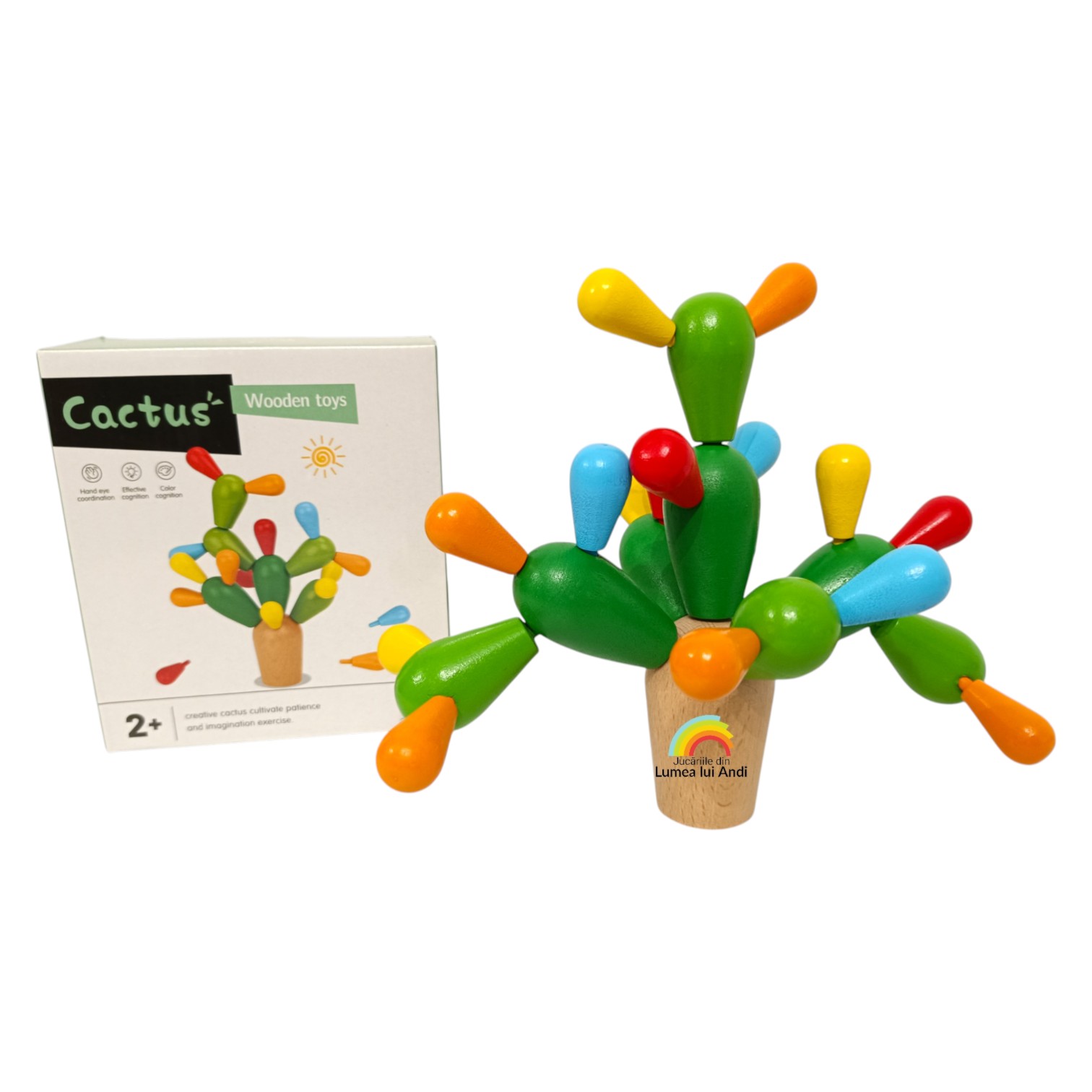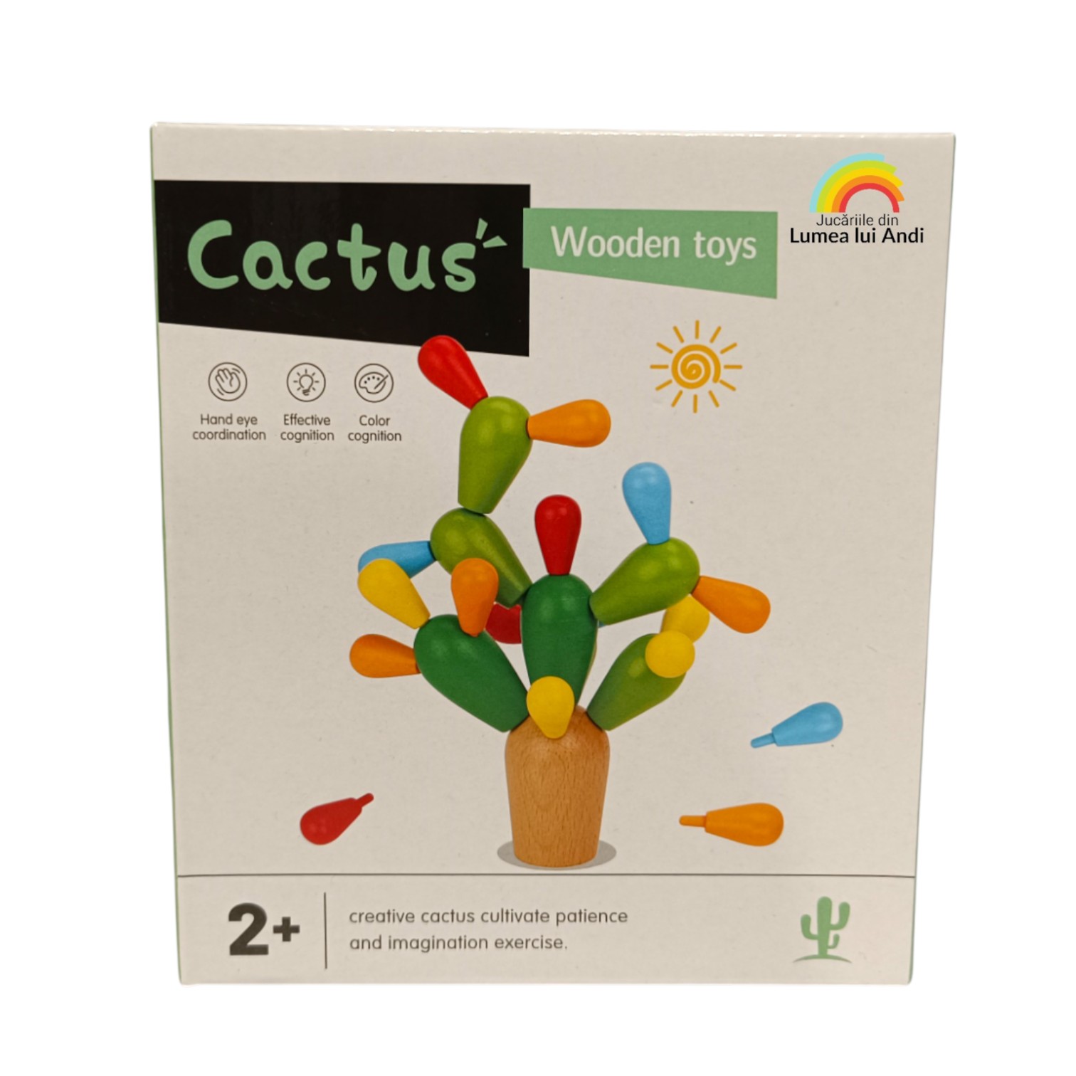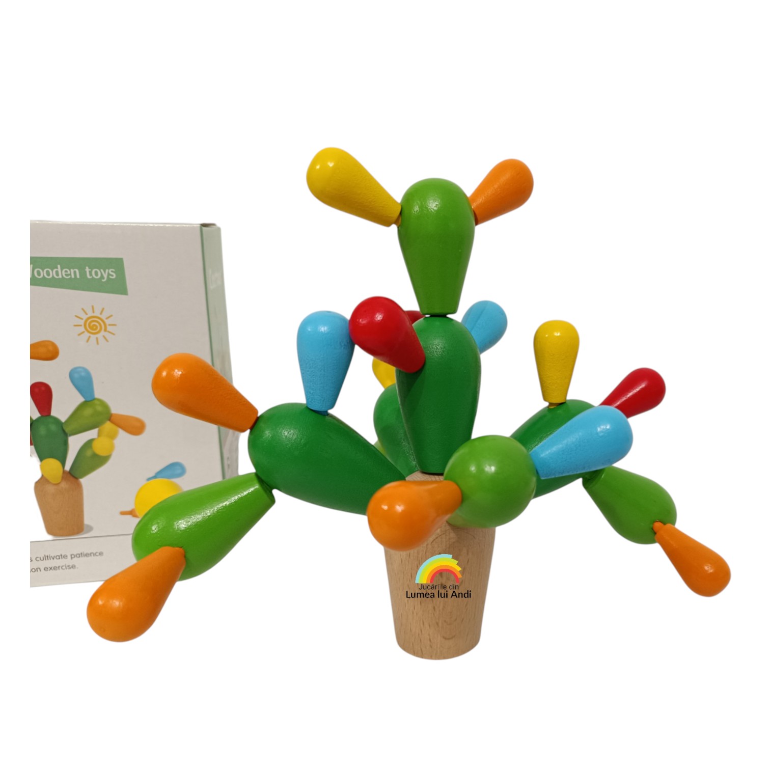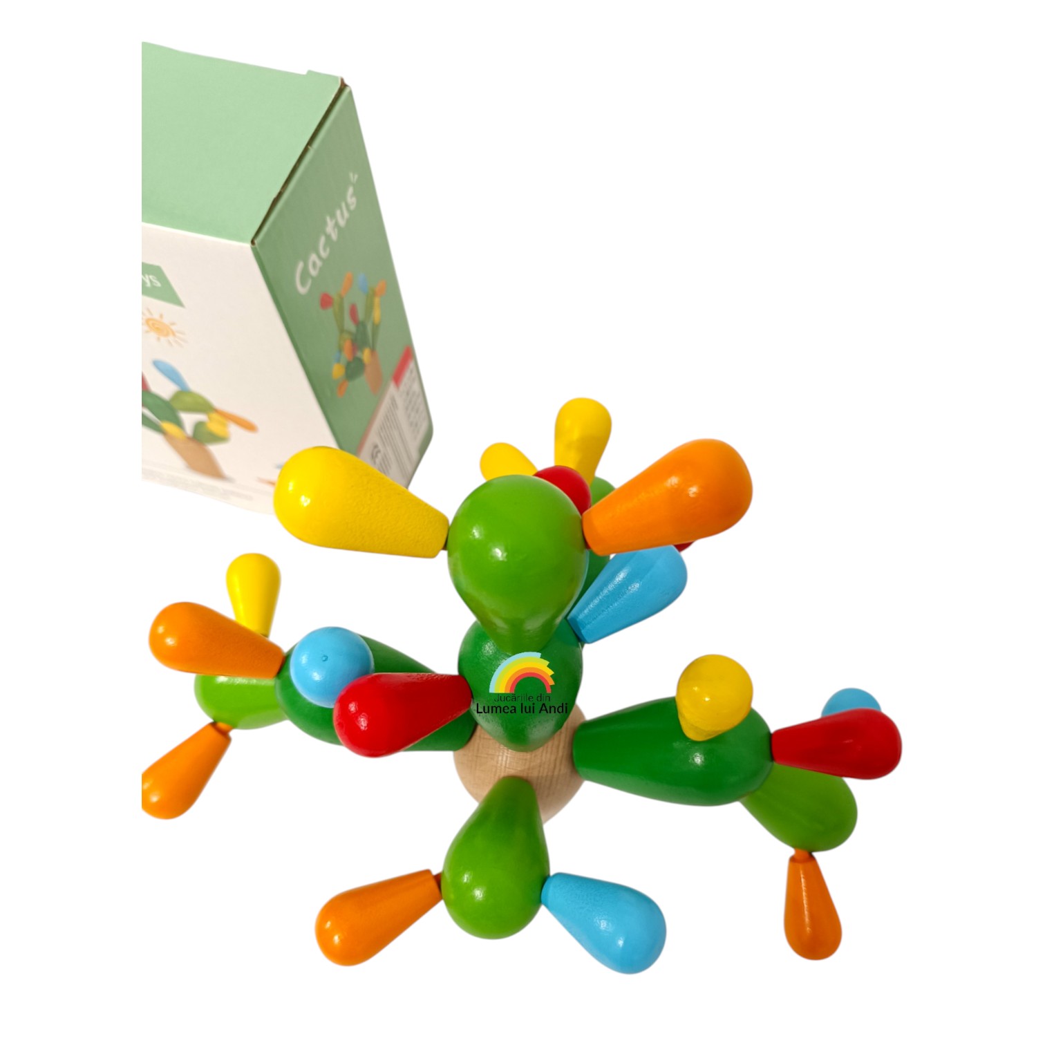 Joc din lemn de echilibru, îndemânare, atenție și construcție creativă Cactus Wooden Toy
