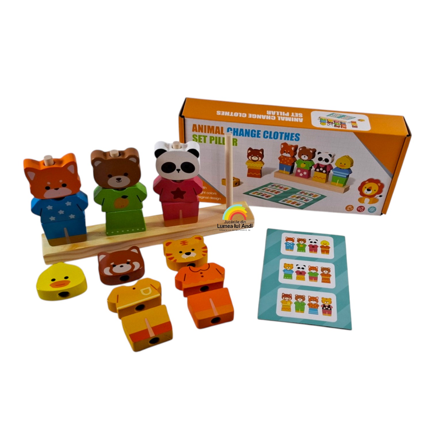 Scopul acestui joc este ca cei mici să reconstituie imaginile din pliantul cu modele și să asocieze corect îmbrăcămintea cu capul fiecărui animal. Jocul le stimulează gândirea logică și capacitatea de asociere, dezvoltă abilitățile motorii fine și dexteritatea degetelor, îi ajută pe cei mici să învețe animalele și articolele vestimentare, culorile și diferitele forme.