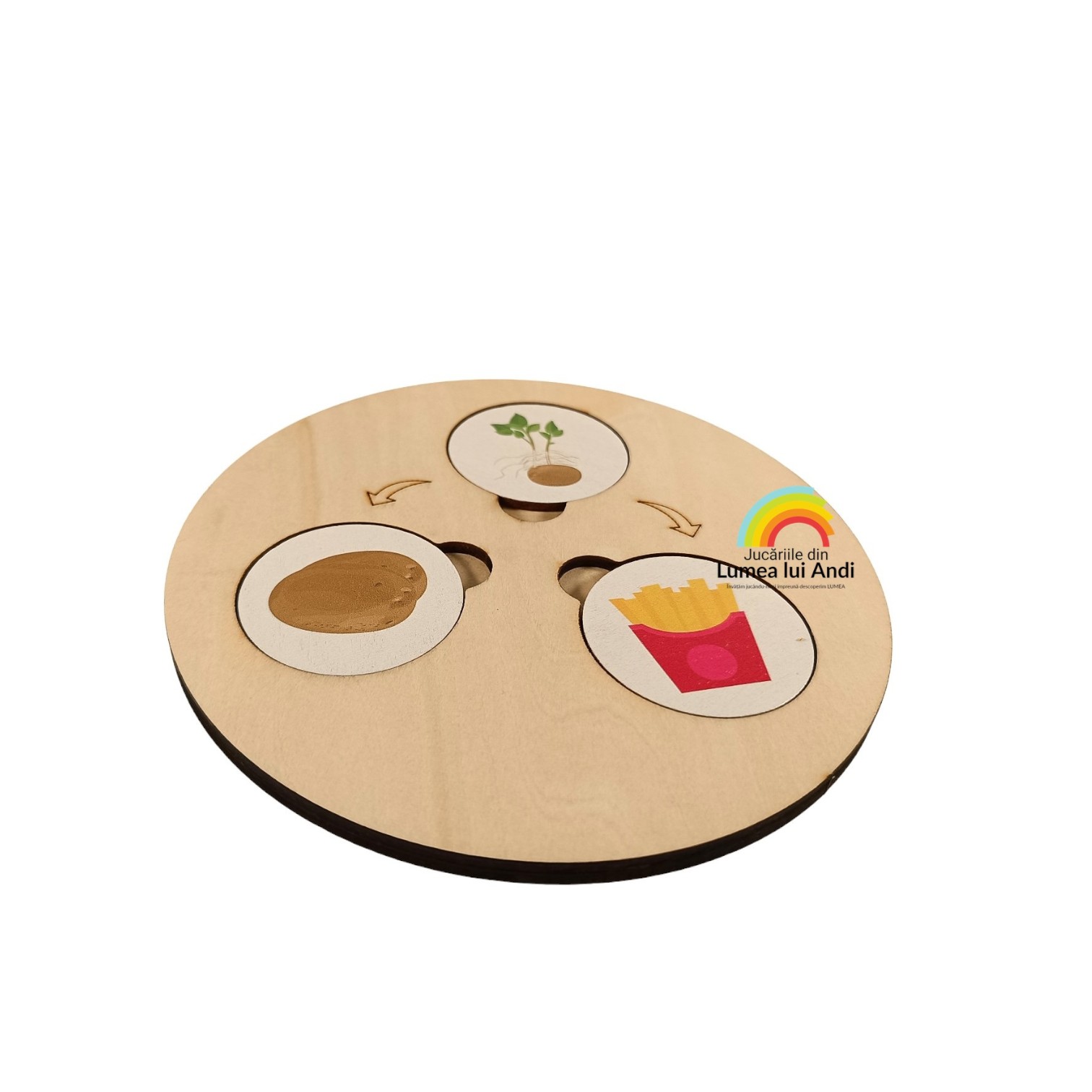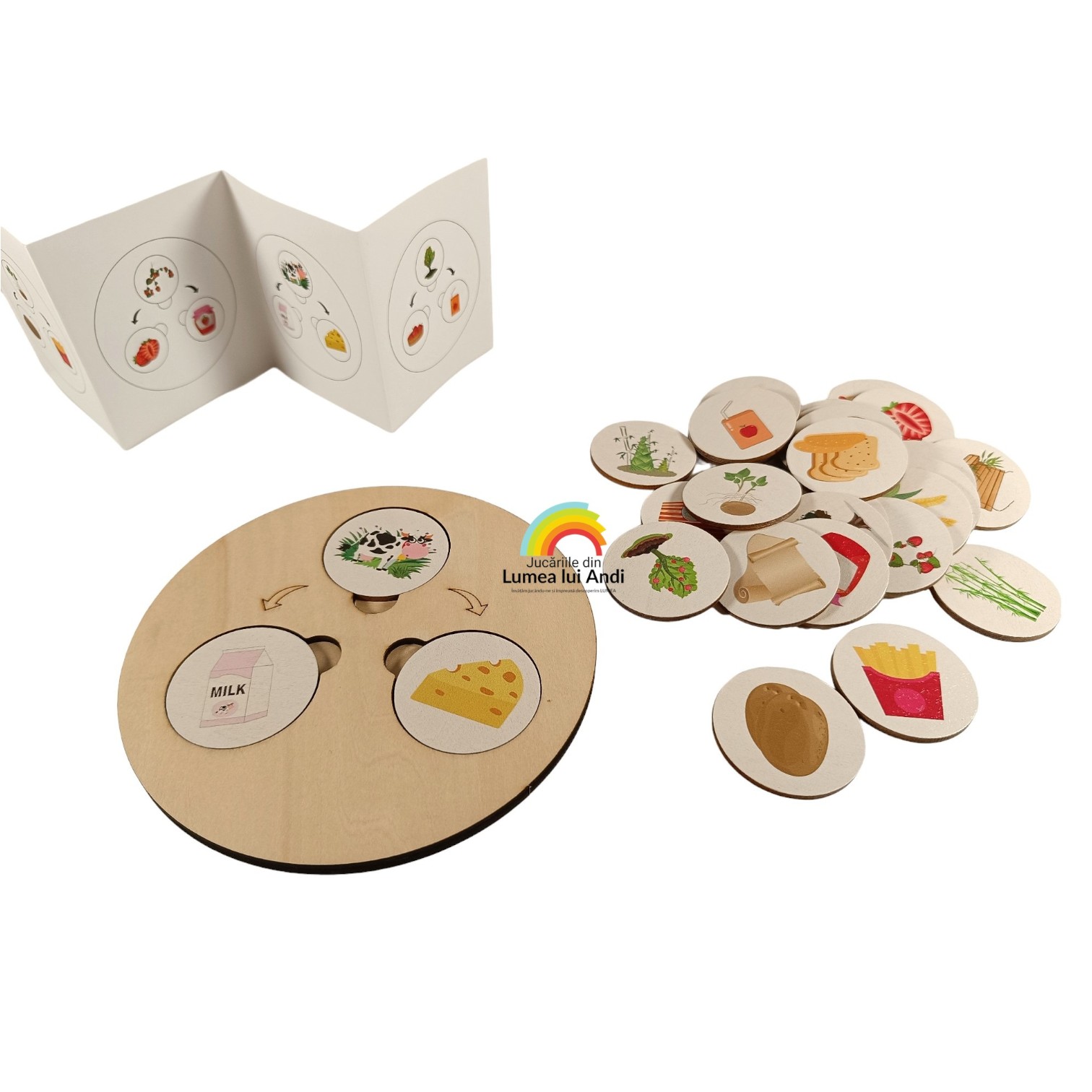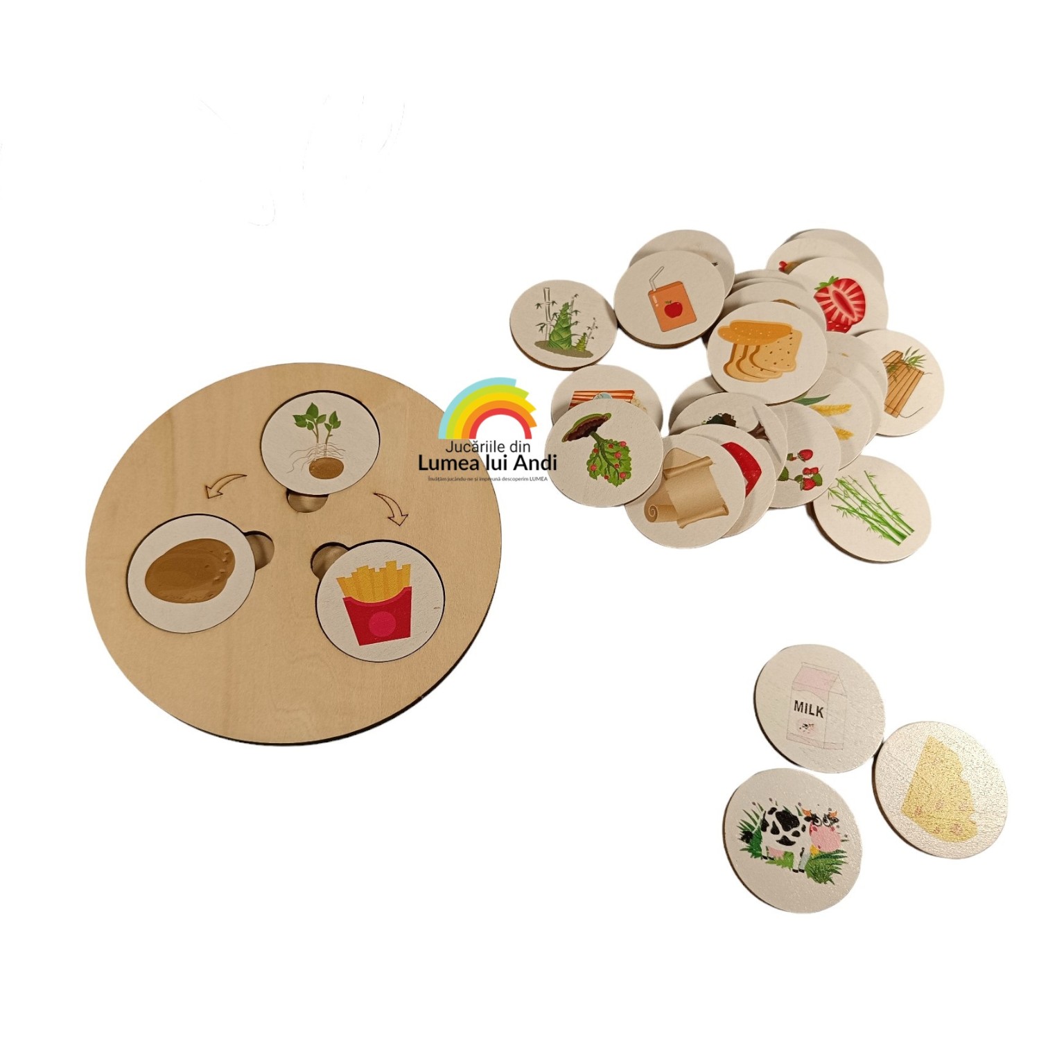 Un joc educativ potrivit pentru educația celor mici, ajută la înțelegerea diferitelor aspecte ale vieții și despre diferitele cicluri de viață ale animalelor ori obiectelor, de la materie prima, la produs finit.