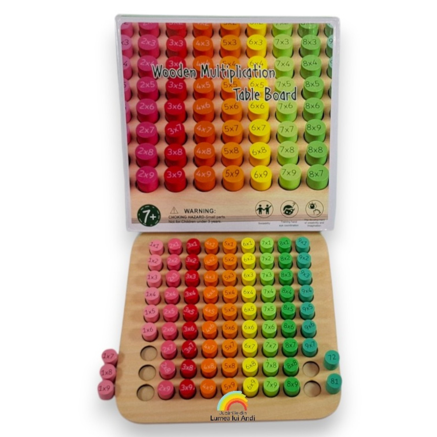 Joc educativ din lemn Tabla înmulțirii cu 81 de pioni