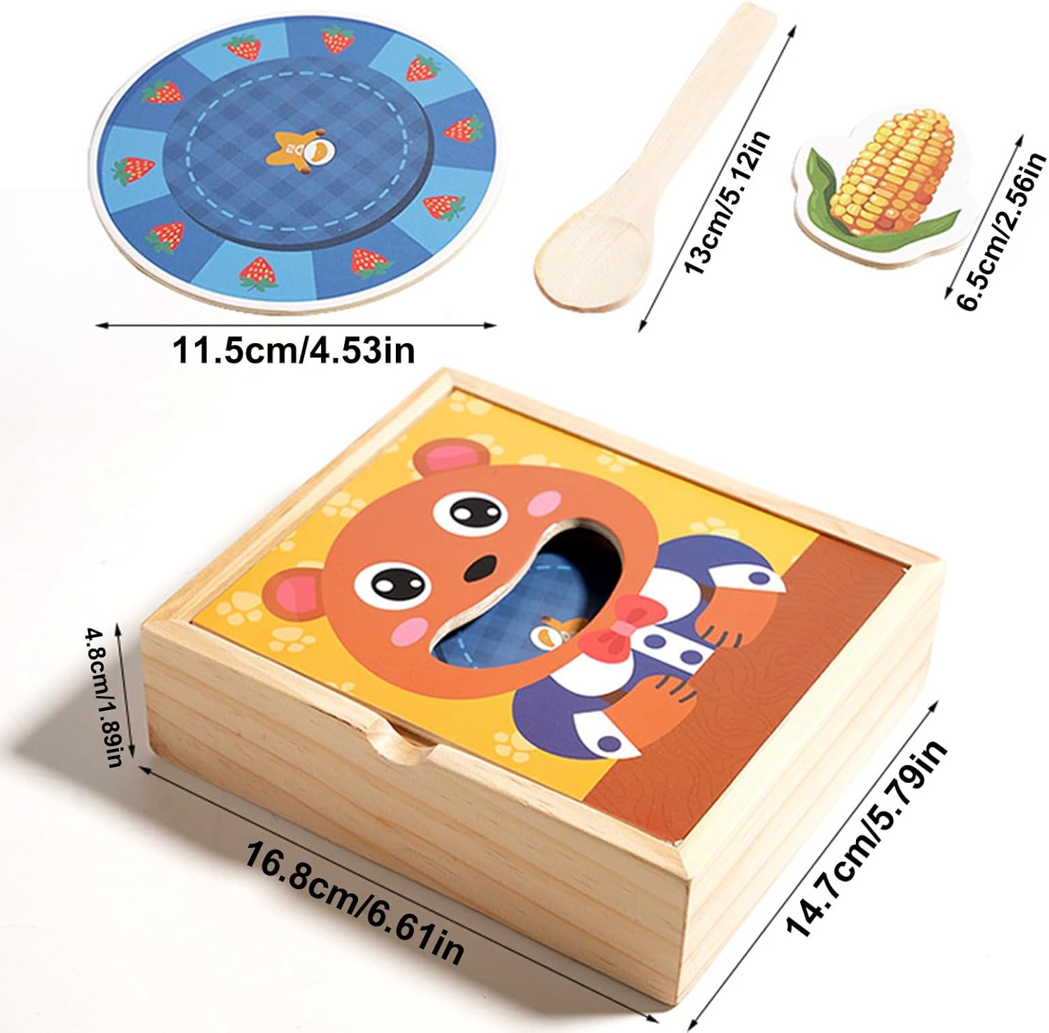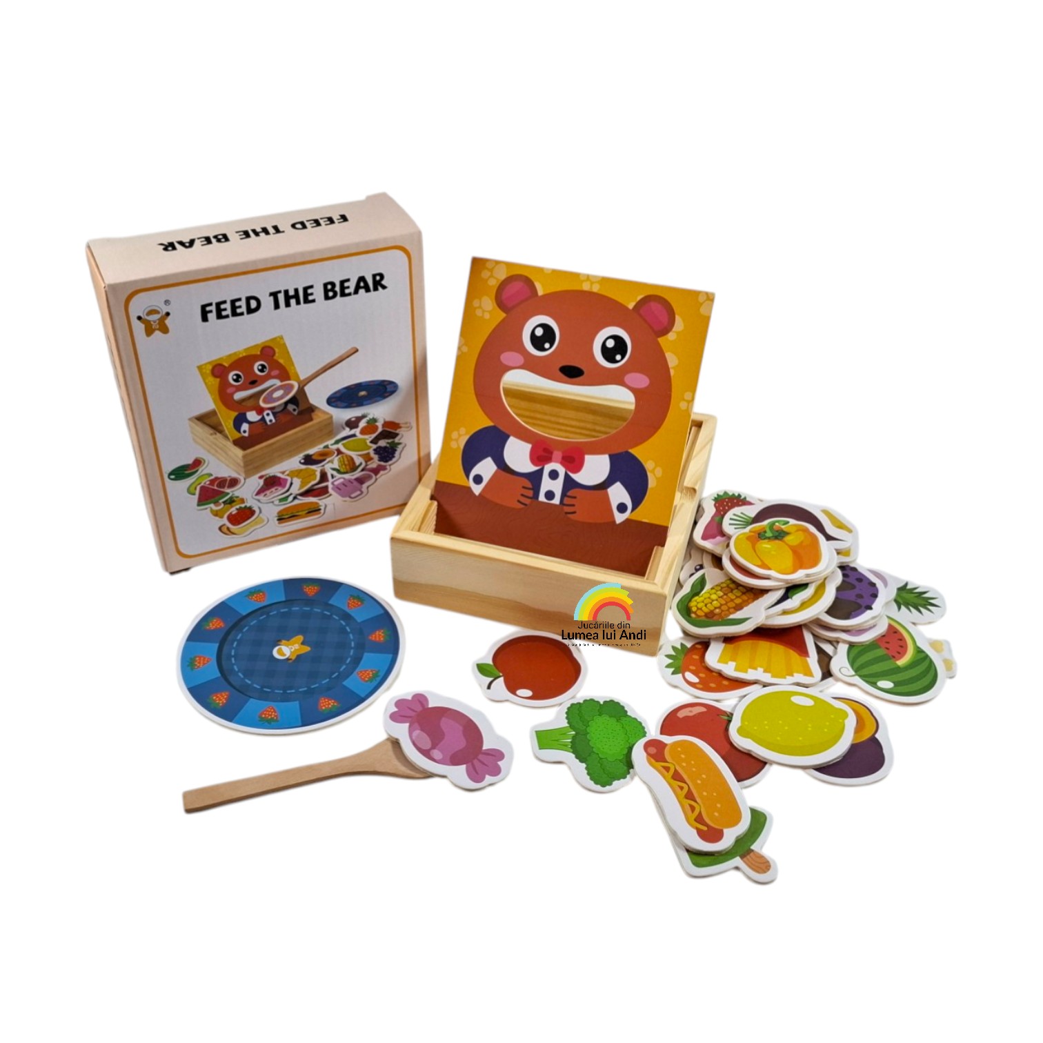 Jocul este foarte ușor de utilizat, capacul cutiei în care se depozitează piesele se va așeza oblic în suportul interior al cutiei, iar apoi cei mici trebuie să hrănească ursulețul luând alimentele cu lingura de pe farfurie. Pentru început, copilașii mai mici pot hrăni ursulețul direct cu mânuța, iar ulterior să folosească lingura, pe măsură ce capătă dexteritate.