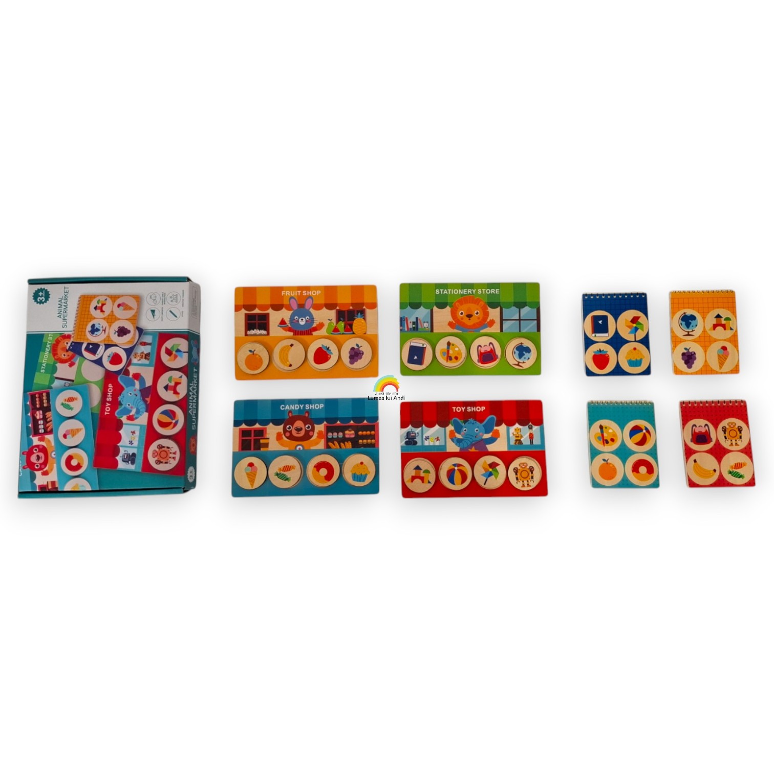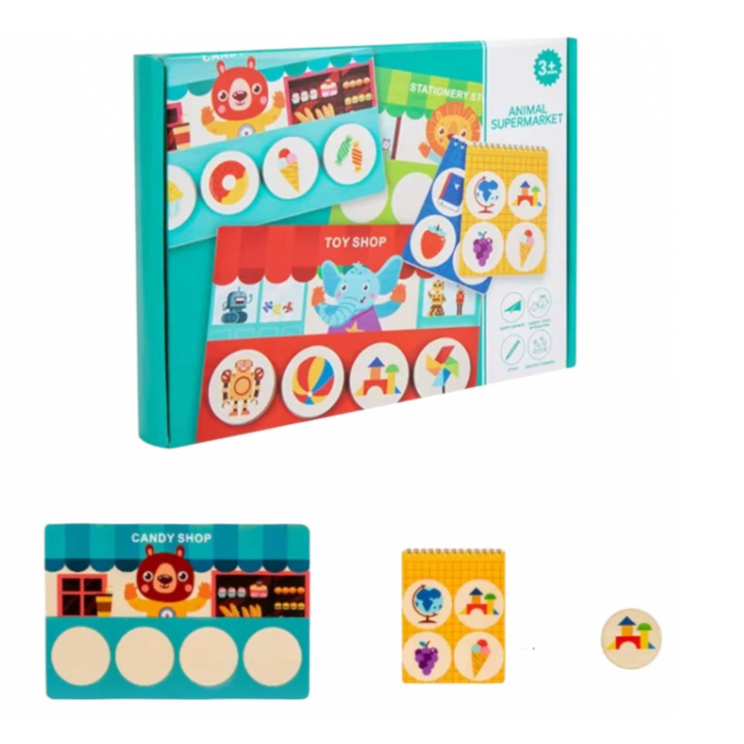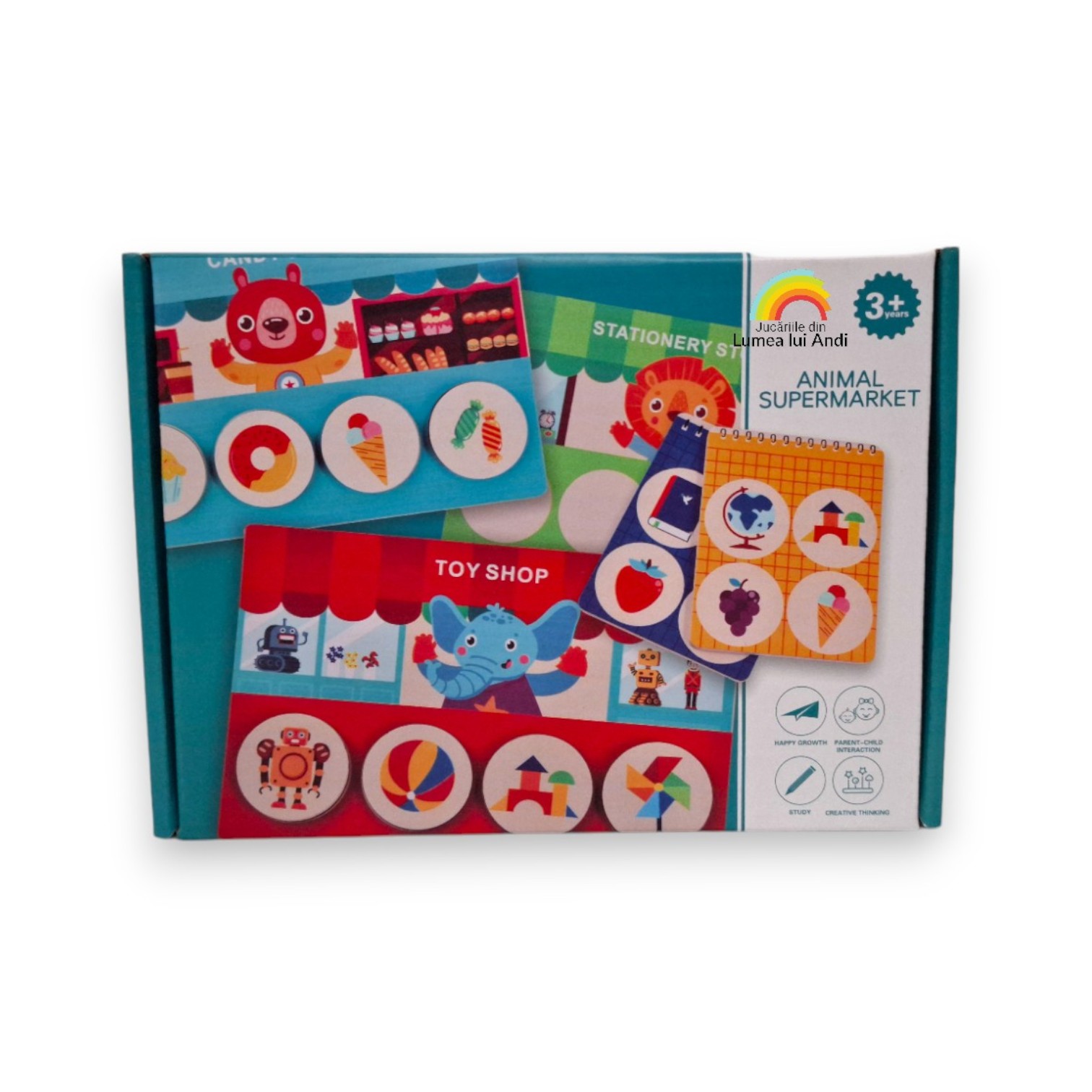 Joc educativ Montessori de asociere și memorie supermarketul animalelor