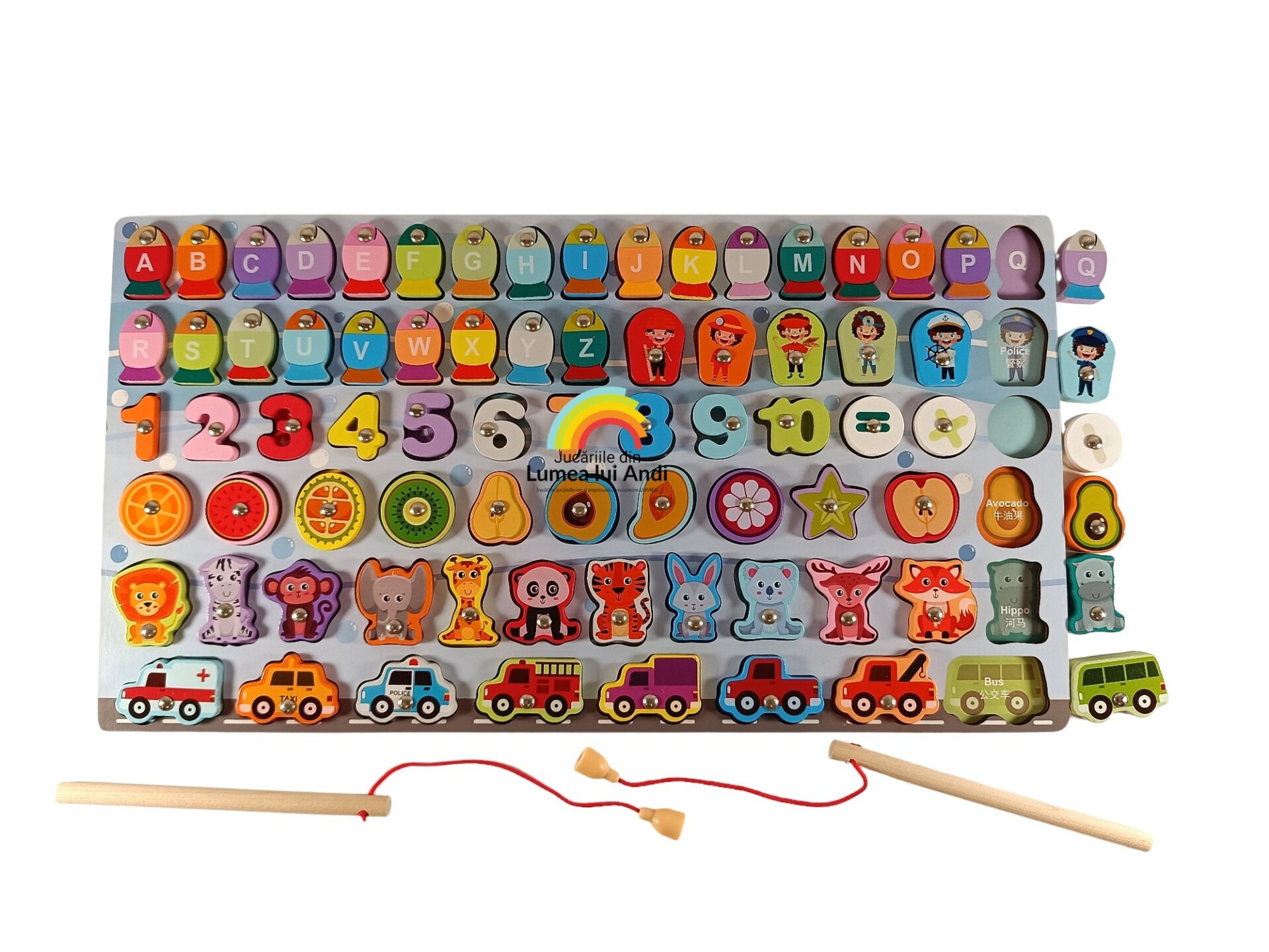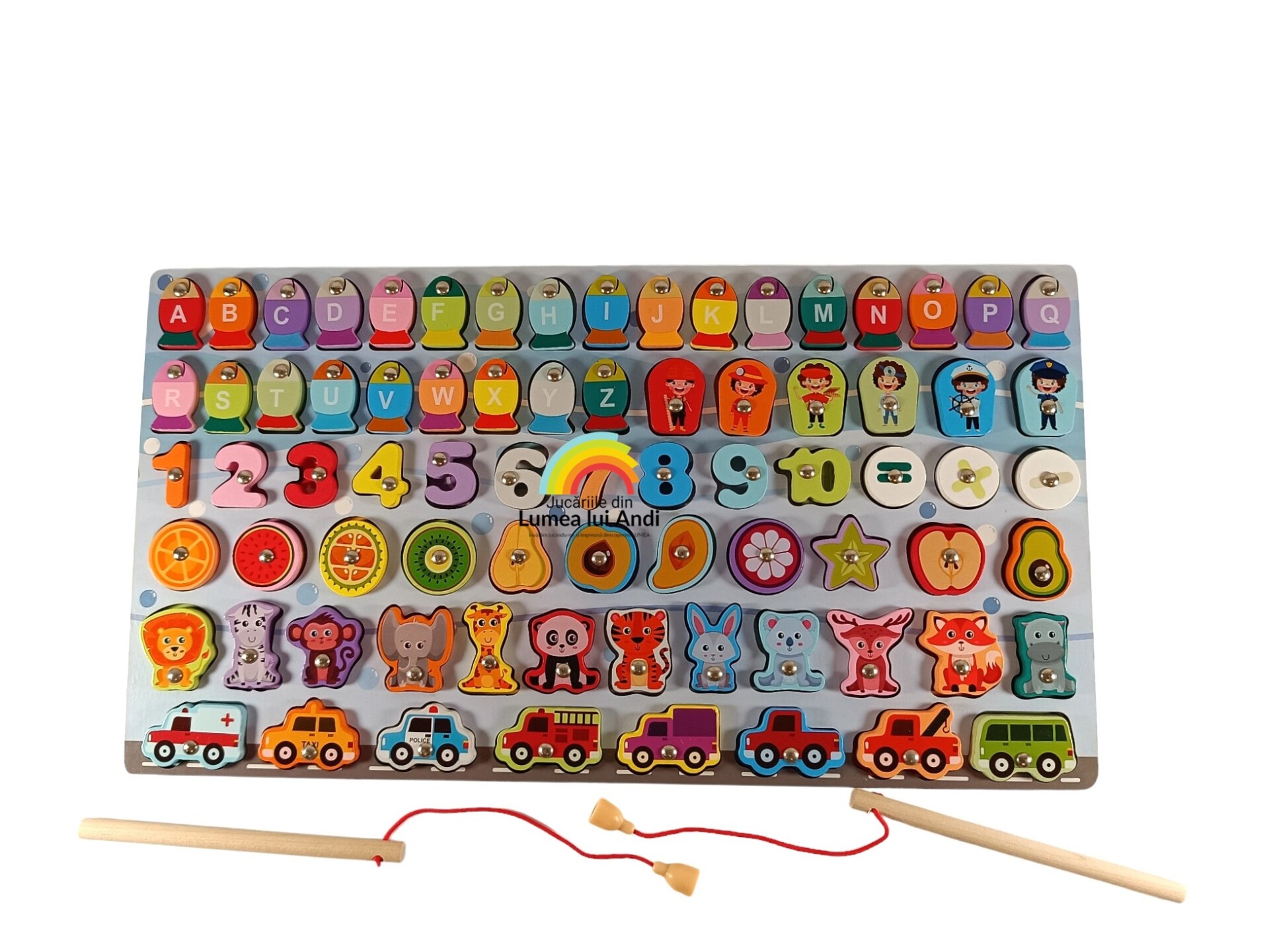 Jocul este de tip încastru, ideal pentru a dezvolta și abilitățile de asociere și potrivire ale celor mici, iar toate piesele sunt magnetice și se pot pescui.