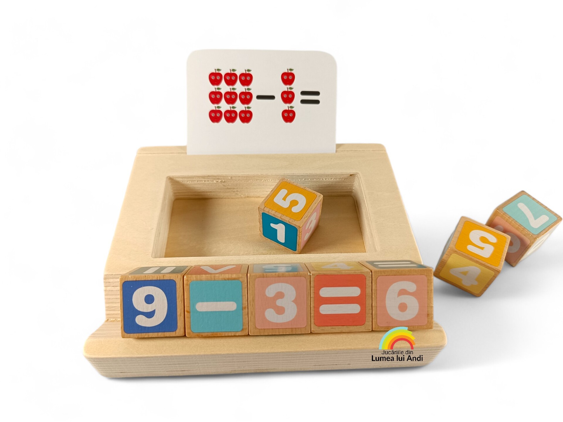 Joc de matematică cu cartonașe și cuburi din lemn