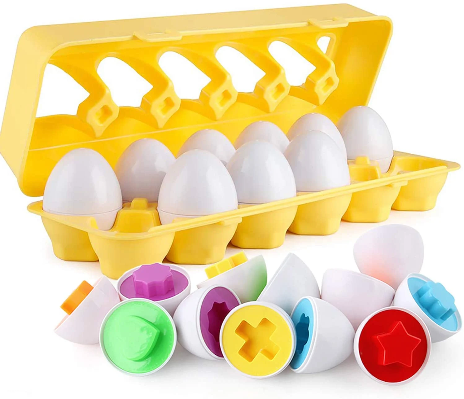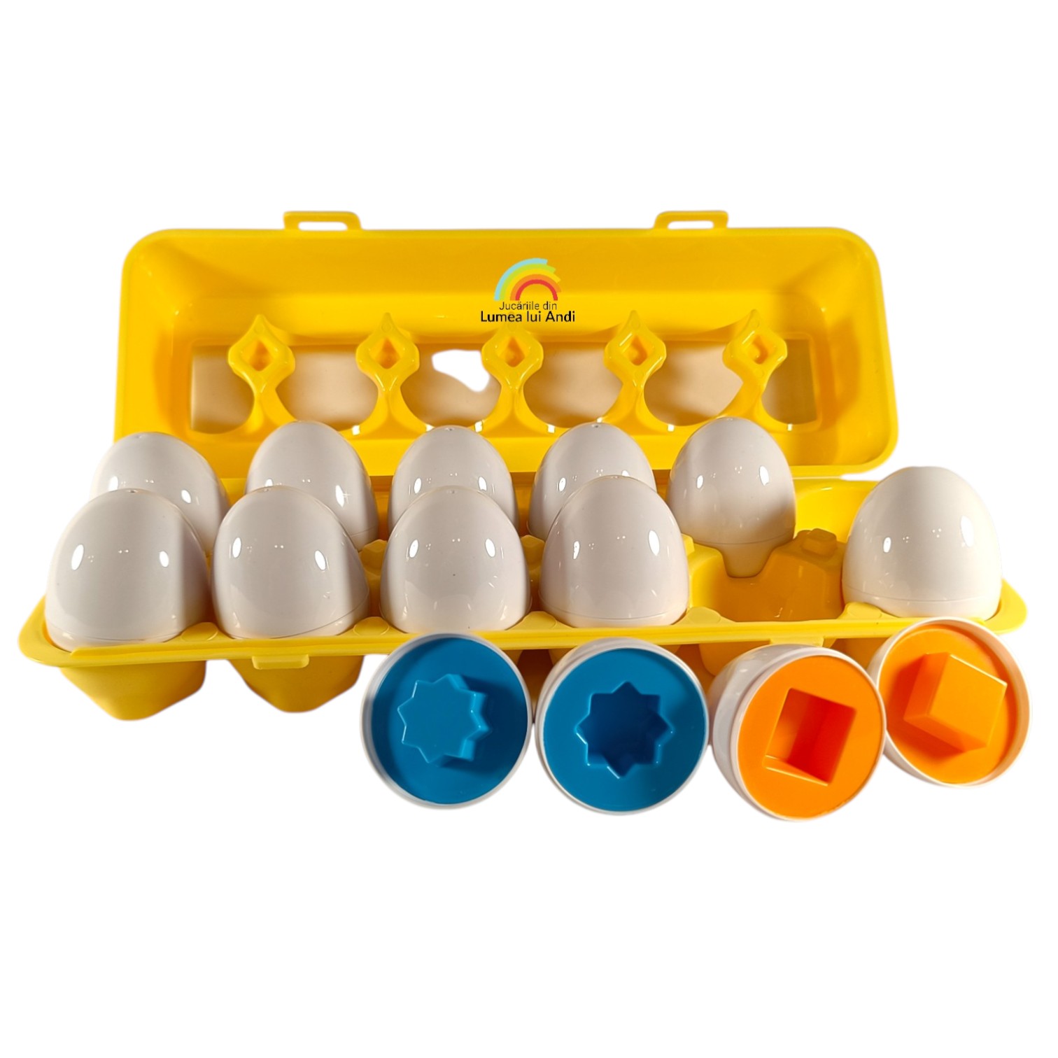 Joc Montessori de potrivire și asociere – set 12 ouă cu forme