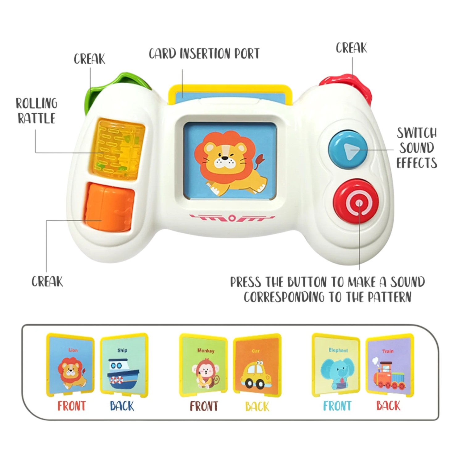 Jucărie interactivă pentru bebeluși cu sunete și lumini – consolă cu 3 carduri
