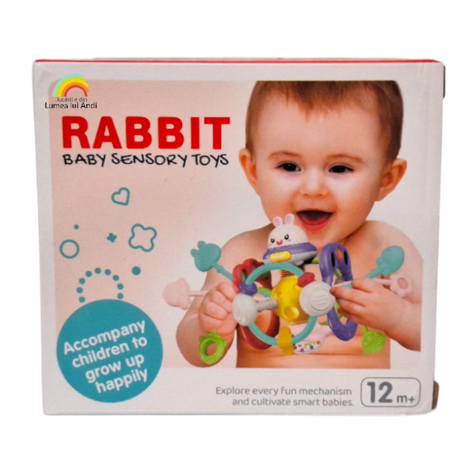Jucărie senzorială, de dentiție și de motricitate pentru bebeluși Iepuraș