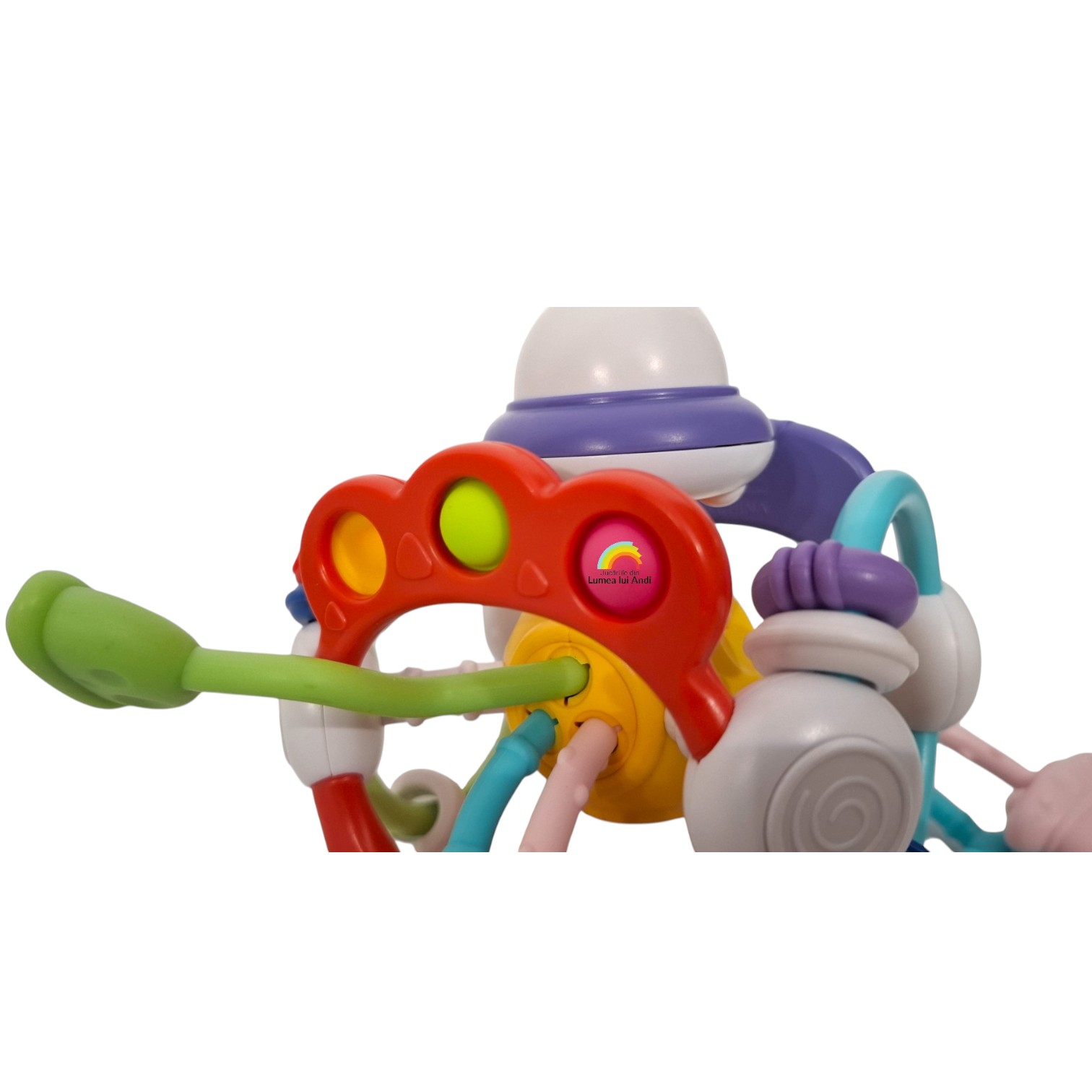 Are suprafețele texturate diferit pentru masarea gingiilor bebelușului, oferind alinare gingiilor sensibile. Nu are margini ascuțite, iar accesoriile sunt bine fixate în interior și nu se pot desprinde. Forma pe care o are face ca această jucărie să fie foarte ușor de prins și de ținut în mânuțe de către bebeluși. Este potrivită pentru a fi folosită acasă sau afară, în deplasări, în cărucior sau mașină.