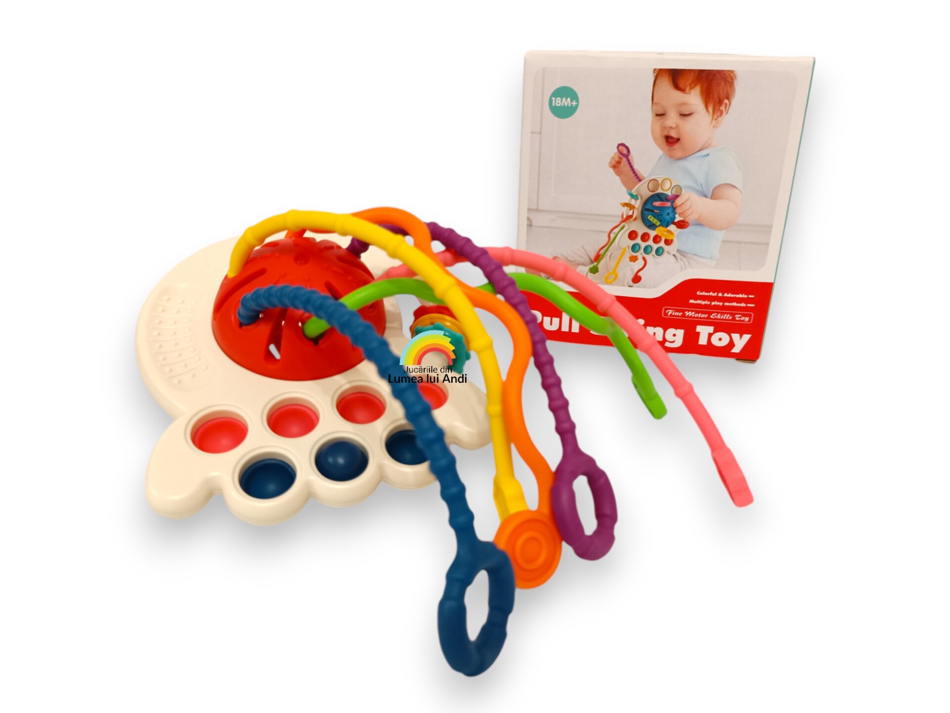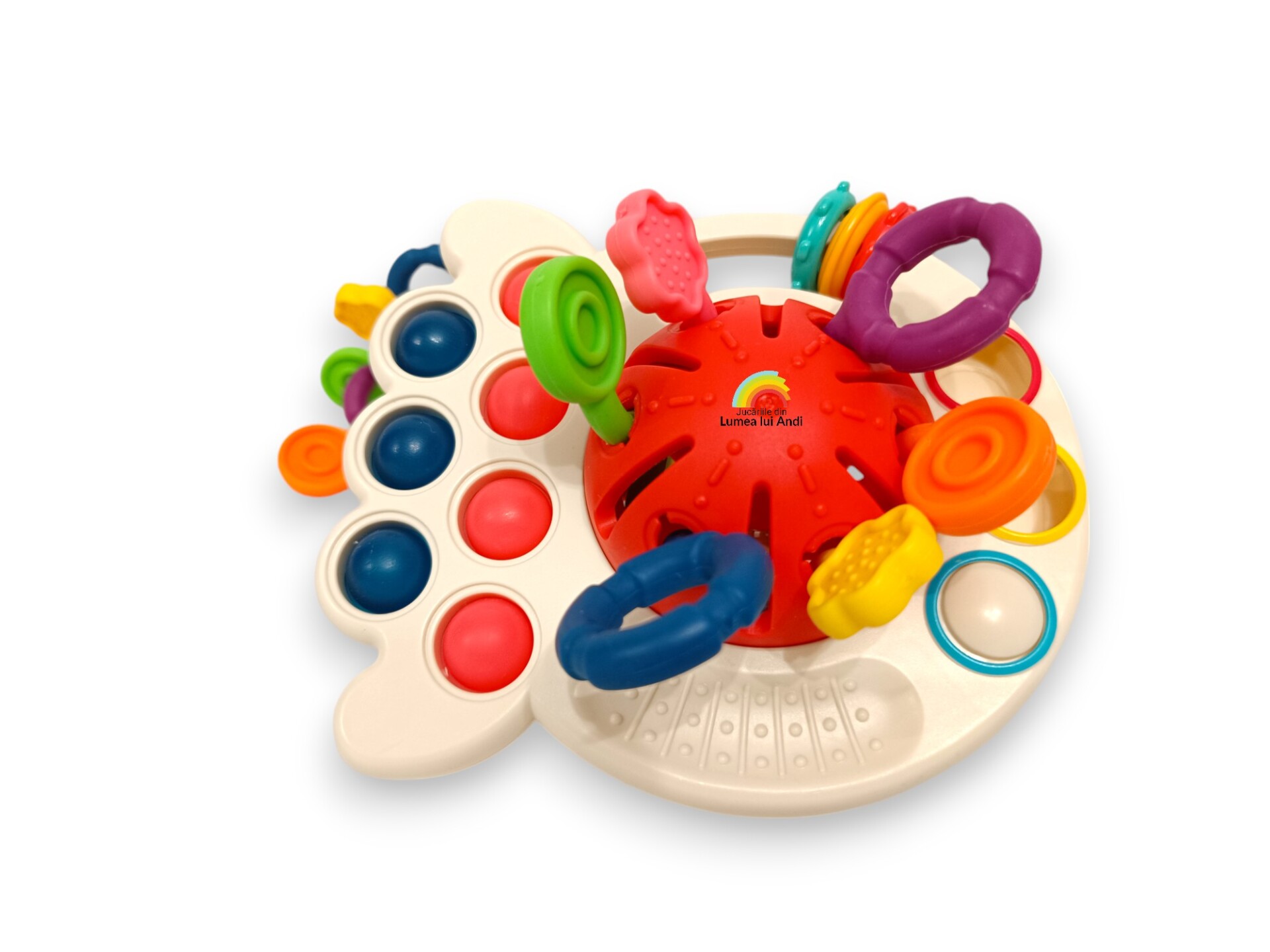 Jucărie senzorială, de dentiție și de motricitate pentru bebeluși OZN Montessori – roșu