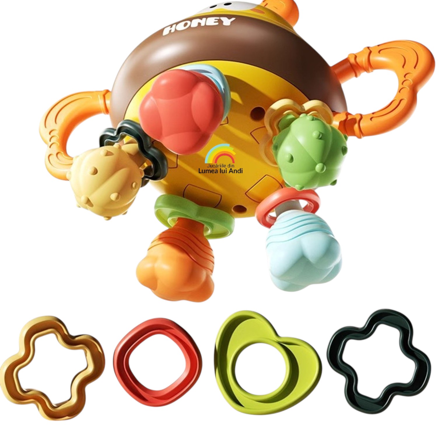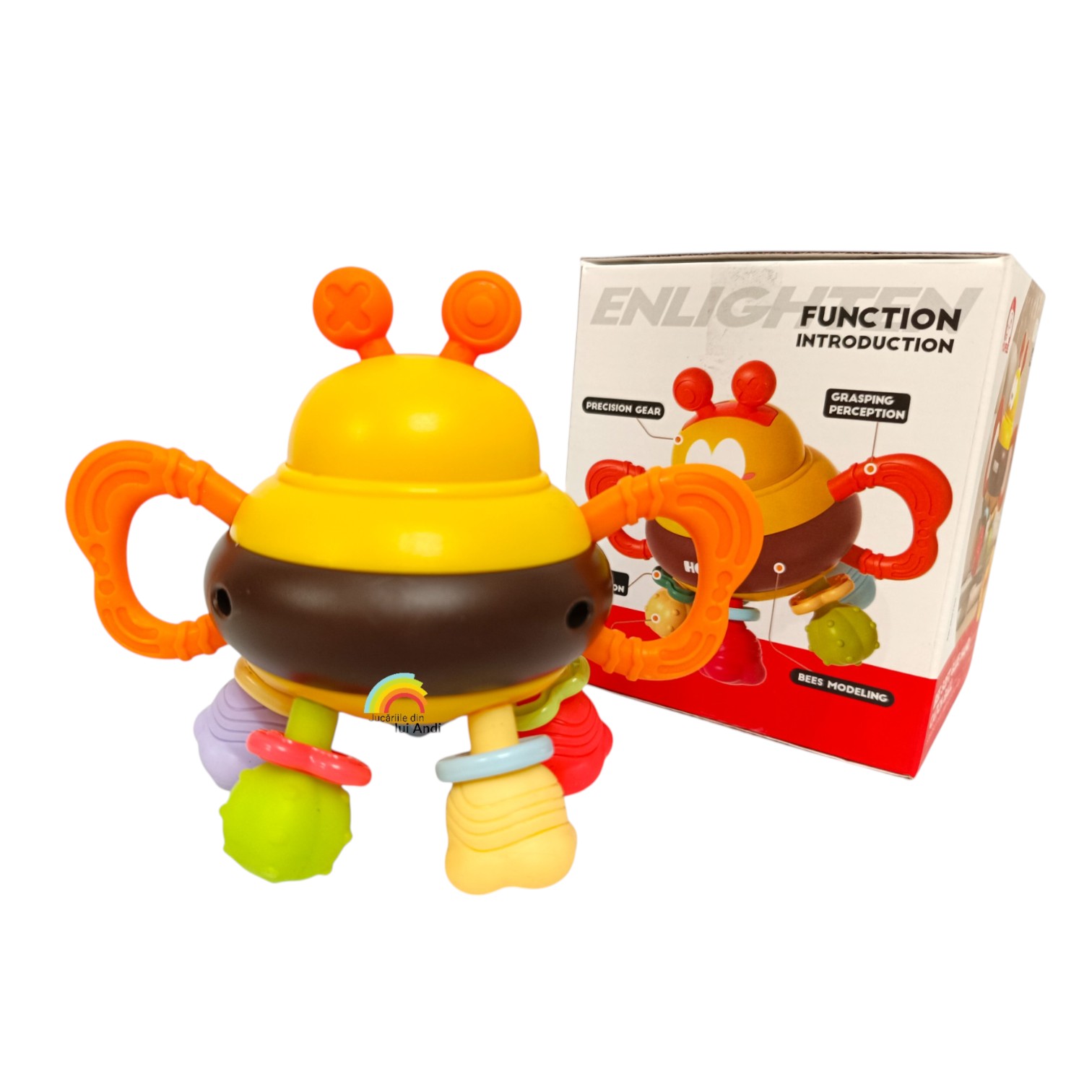 Această jucărie sub formă de albinuță stimulează simțurile vizuale și tactile ale bebelușului, îl ajută să își dezvolte abilitățile motorii fine și să își îmbunătățească coordonarea ochi-mână, este ideală pentru joaca zilnică și explorarea senzorială, oferind în același timp alinare gingiilor sensibile.