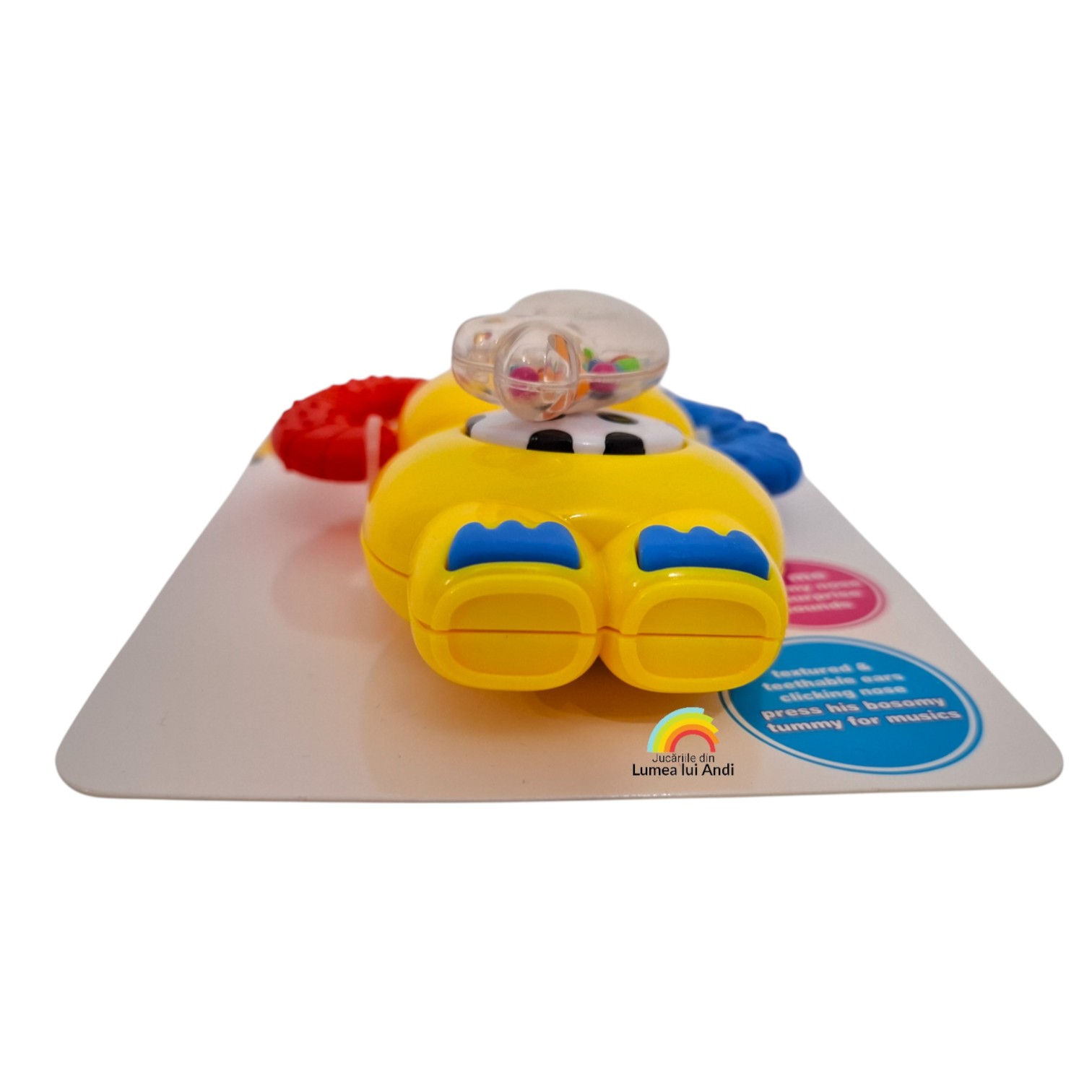 Aceasta este o jucărie interactivă cu sunete, perfectă pentru stimularea simțurilor auditive ale celor mici, dar și pentru dezvoltarea abilitătilor motorii fine și a coordonării ochi-mână.