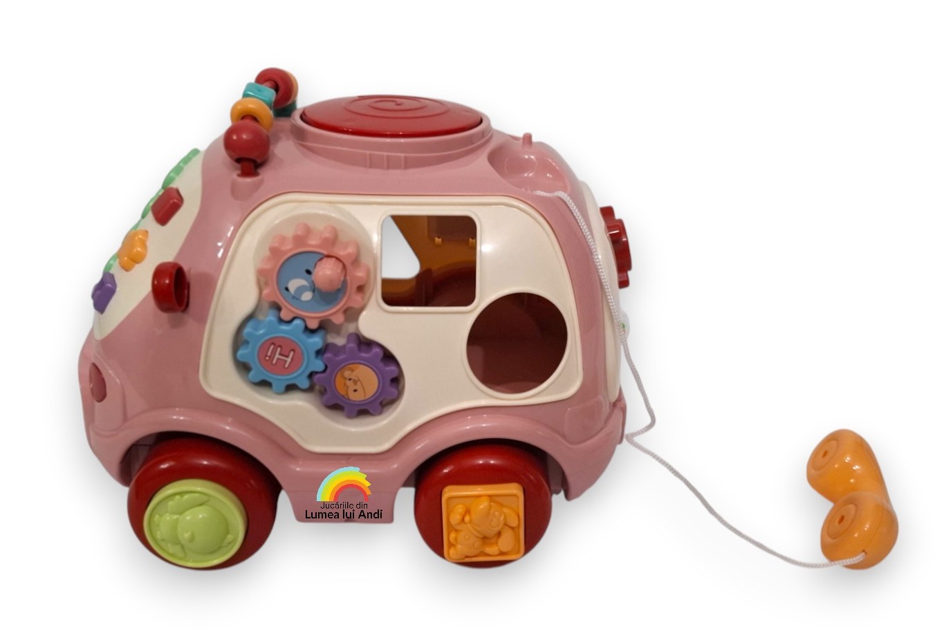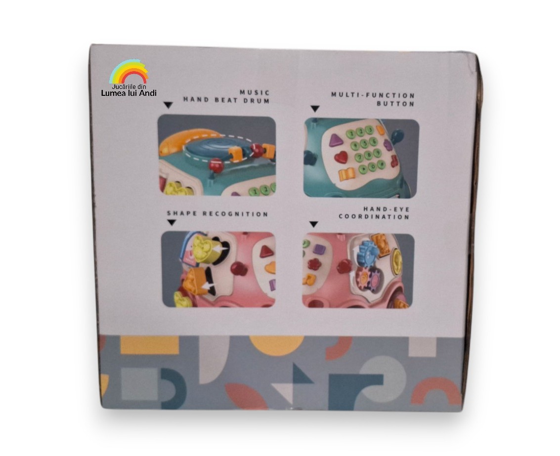 Are o multitudine de activități pentru cei mici, cu butoane, efecte sonore și muzicale: