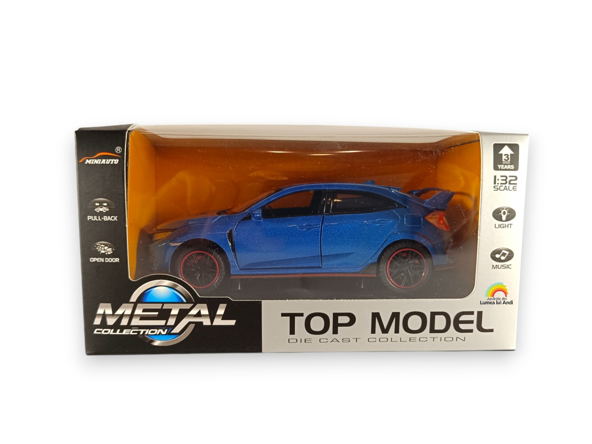 Mașinuță metalică cu sunete și lumini, albastră, 14.5 cm