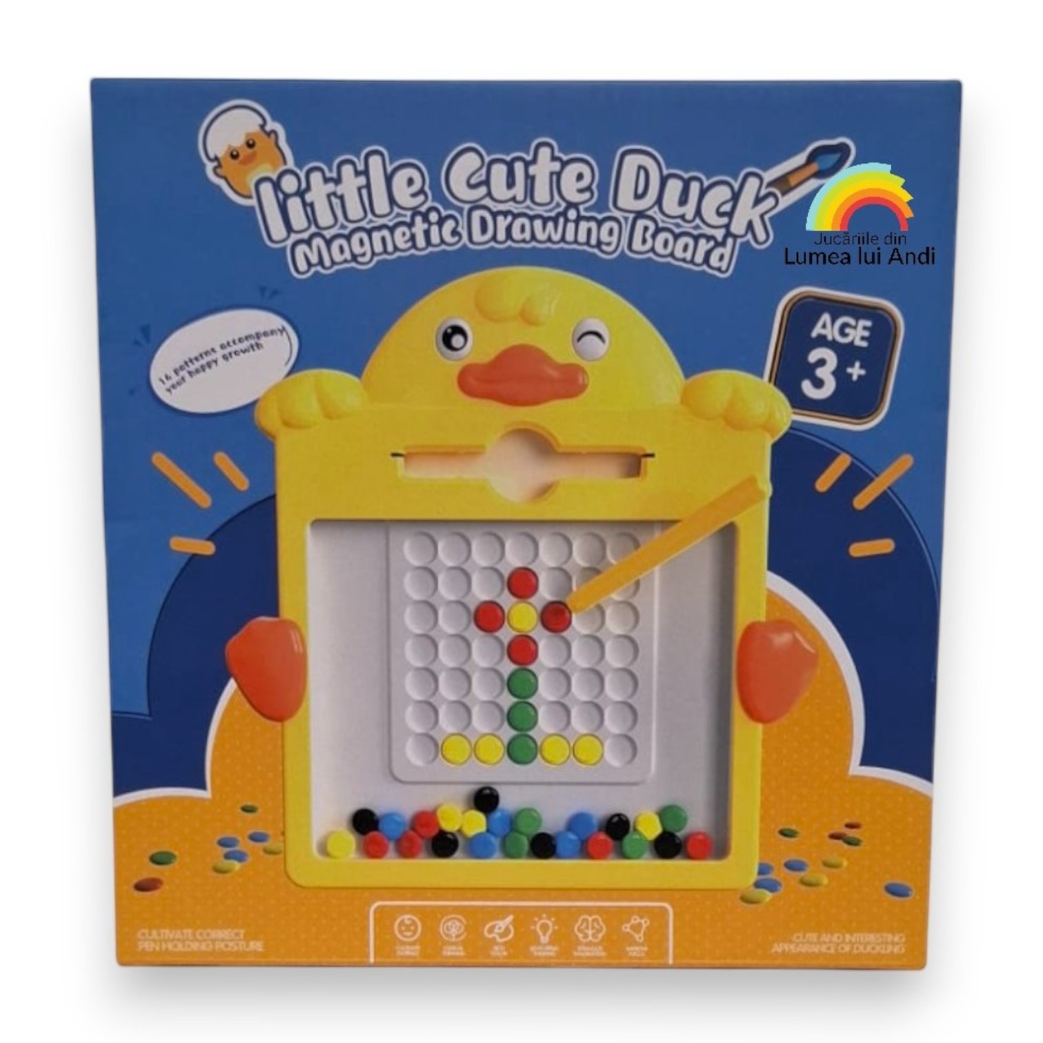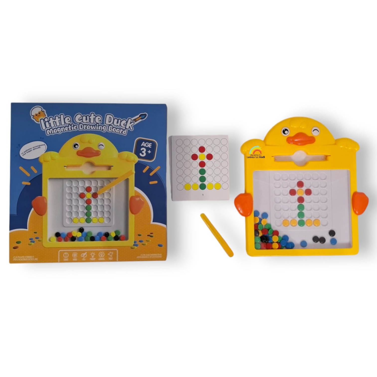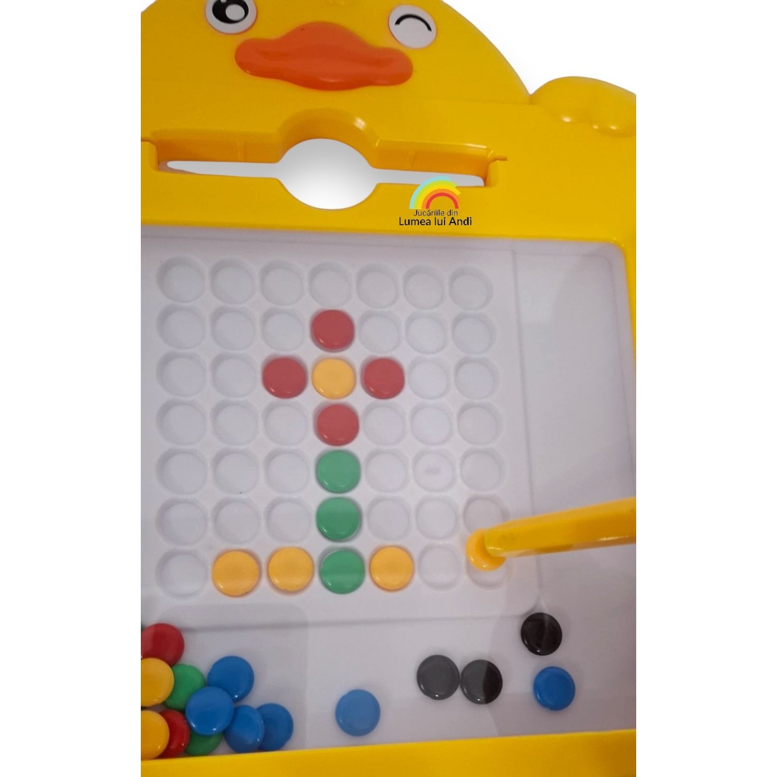 Acesta este un joc educativ care îi ajută pe cei mici să își dezvolte abilitățile motorii fine, gândirea logică și recunoașterea culorilor. Cu ajutorul unui creion magnetic cei mici trebuie să mute piesele colorate în orificiile de pe planșa de joc, conform modelului de pe carduri. De asemenea, pot face modele noi, în funcție de propria imaginație. Planșa de joc este sigilată, iar deasupra are o suprafață securizată, transparentă, iar astfel piesele colorate rămân la interior.