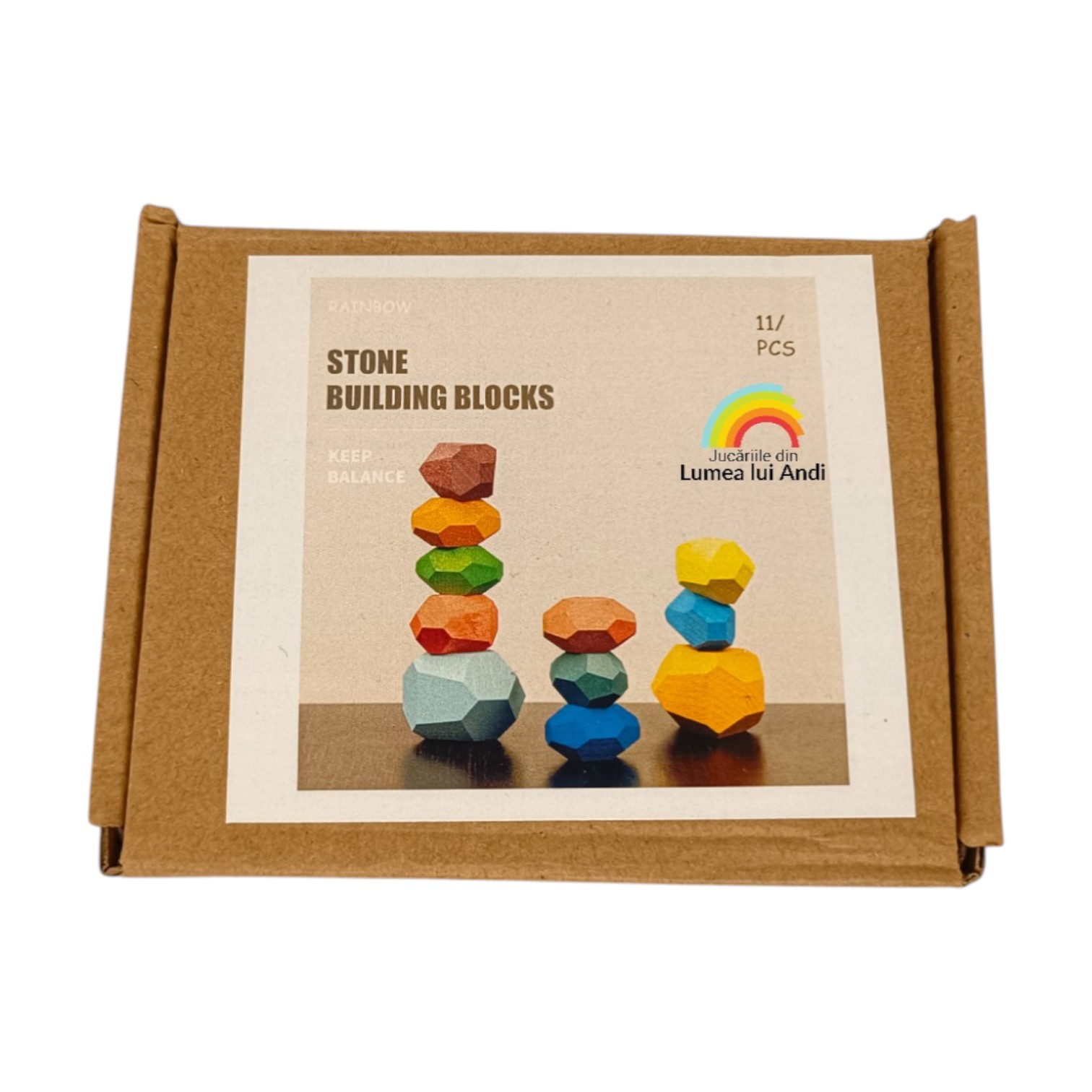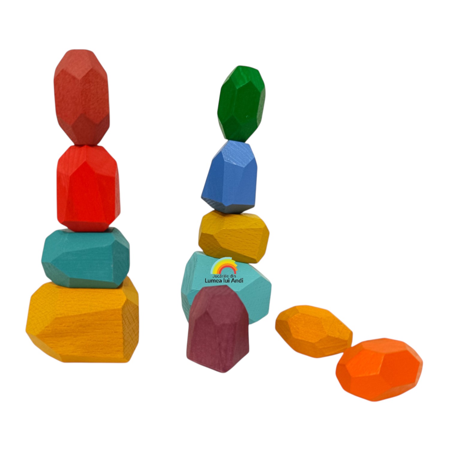 Pietre de stivuit și de echilibru din lemn – set cu 11 piese
