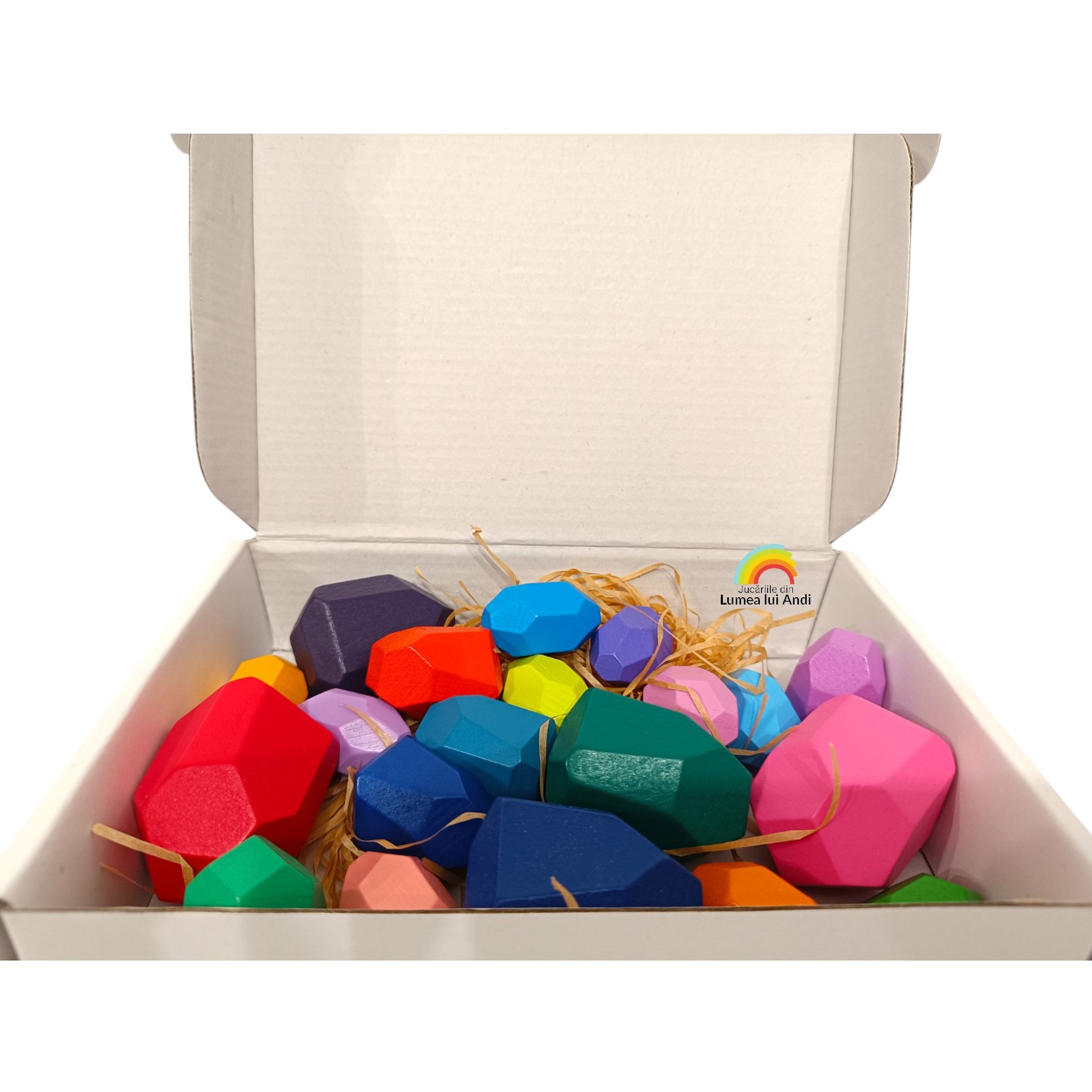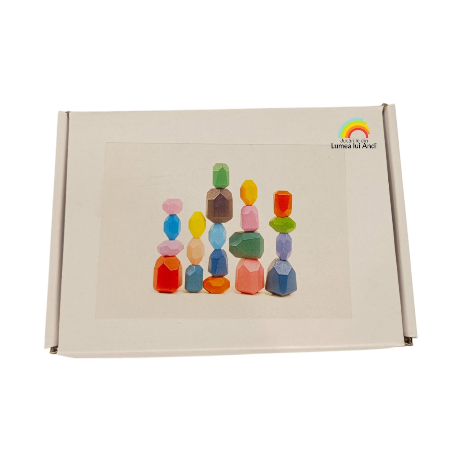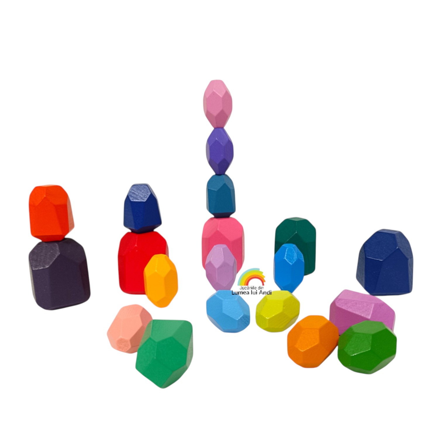 Pietre de stivuit și de echilibru din lemn – set cu 20 de piese colorate