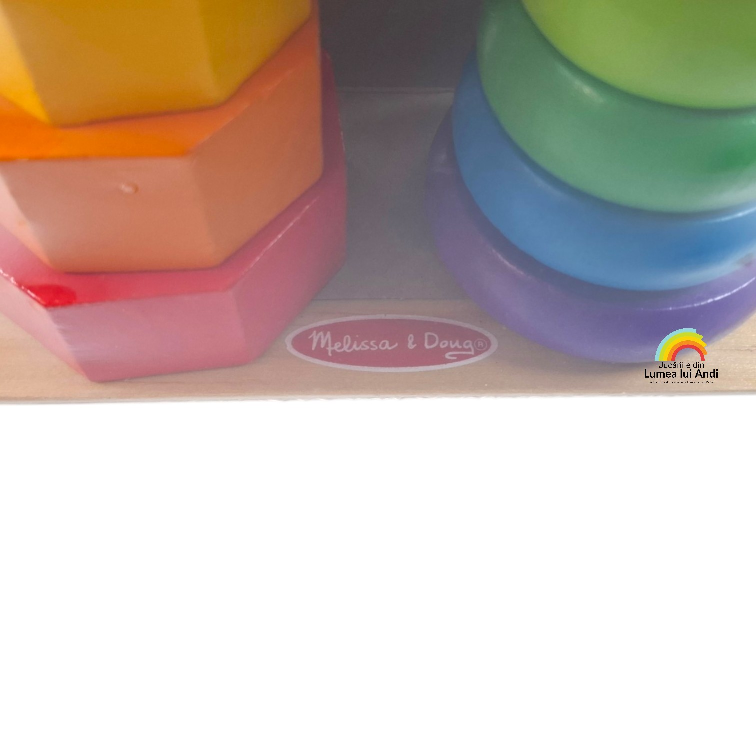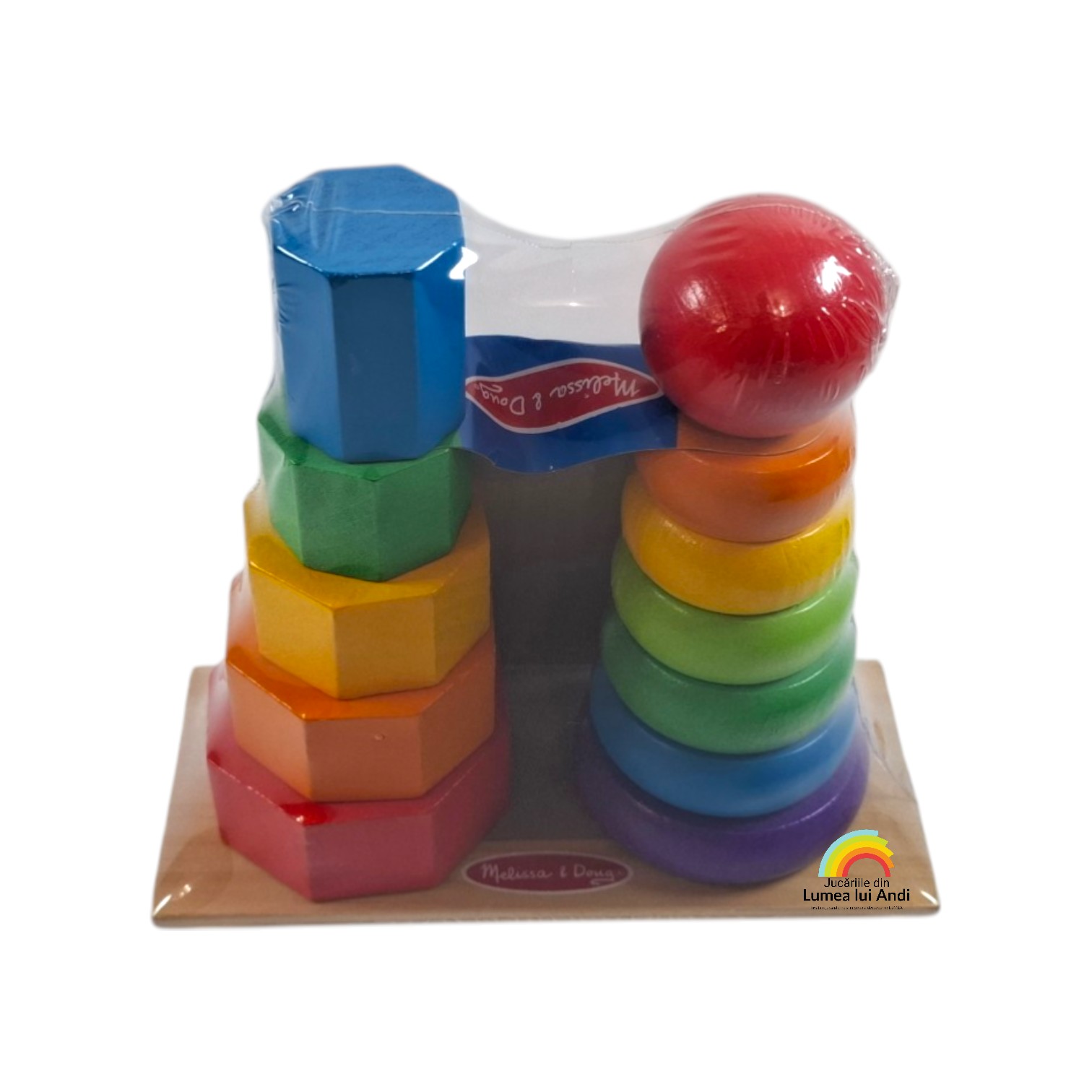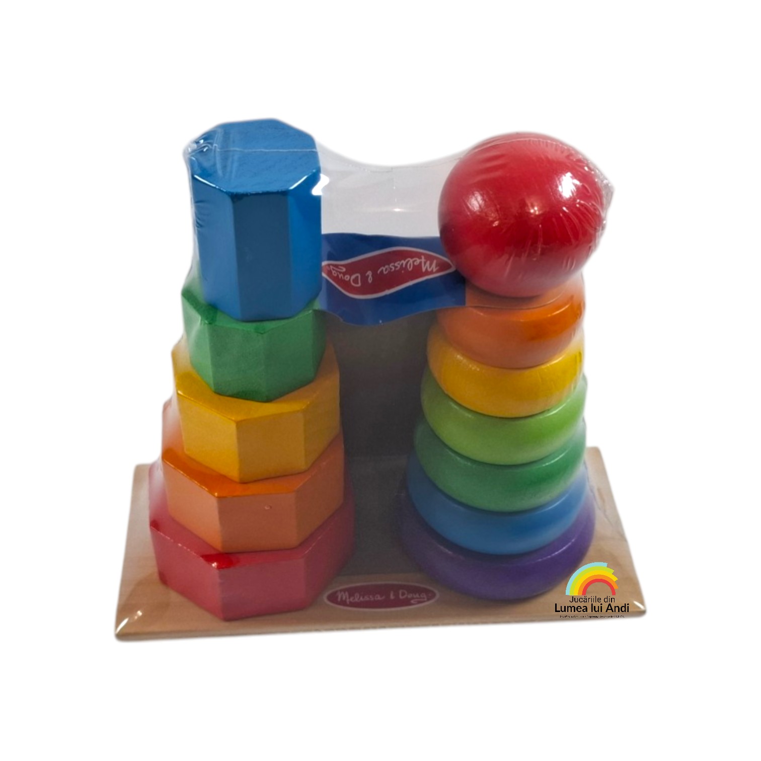 Acest joc ajută la recunoaștrea culorilor și a formelor, la dezvoltarea mișcărilor fine și a coordonarii ochi-mână. Este un joc clasic de sortare și stivuire a celor 7 inele groase și a formelor geometrice.