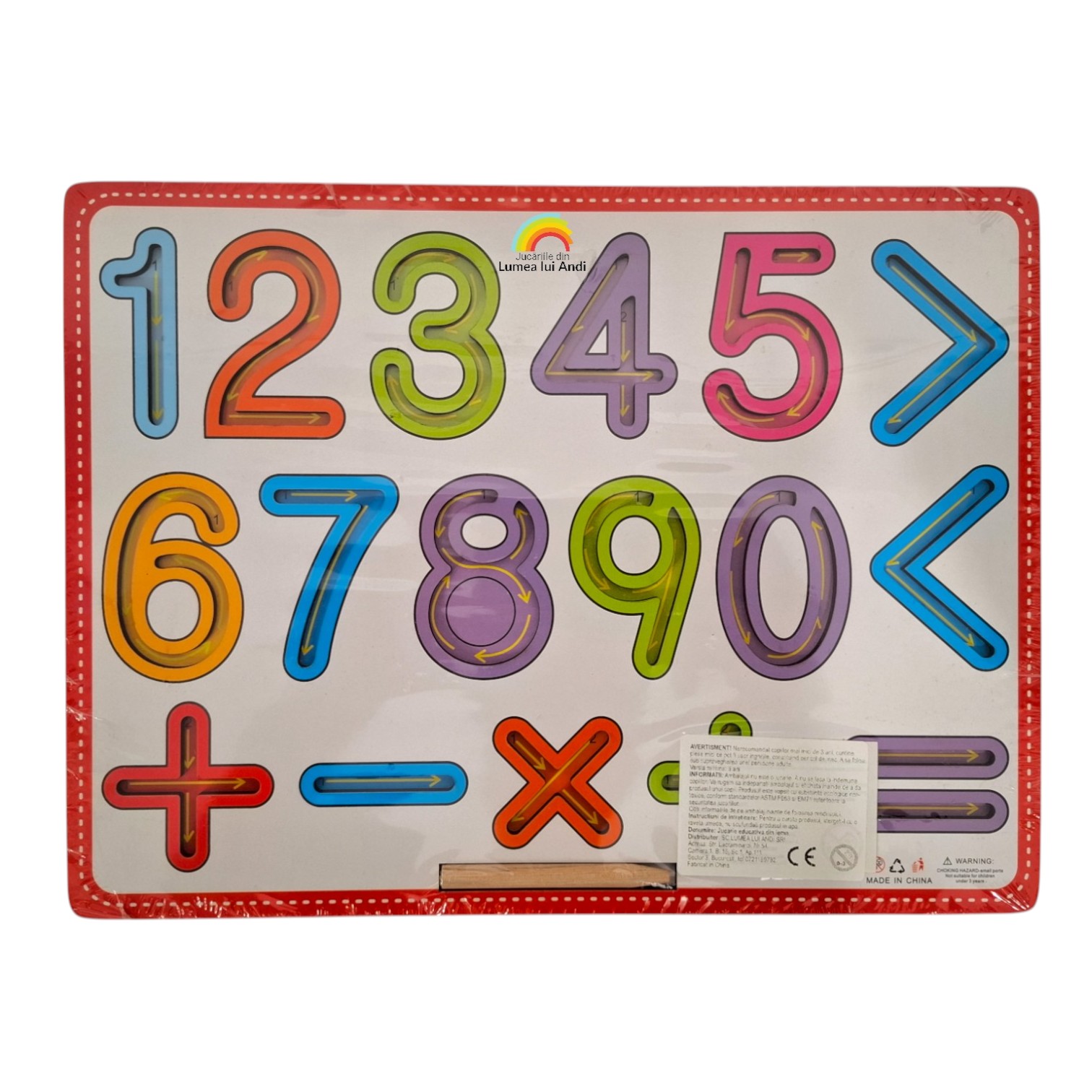 Acest joc este alcătuit dintr-o planșă din lemn pe care sunt sculptate cifrele de la 0 la 9 și semnele aritmetice, precum și un instrument de scris din lemn, similar unui creion, care le permite copiilor șă urmeze conturul cifrelor/semnelor aritmetice, iar astfel vor memora forma fiecăruia și își vor dezvolta abilitățile de scriere. La interiorul cifrelor și semnelor aritmetice sunt desenate săgeți pentru a indica ordinea și modalitatea corectă de a scrie