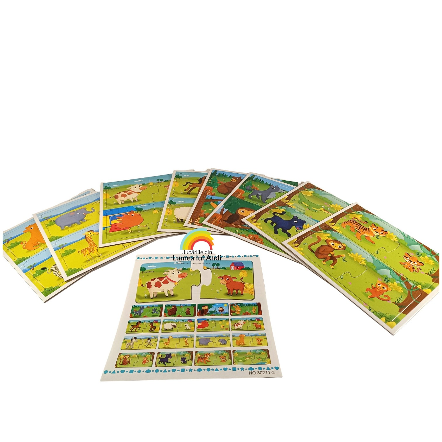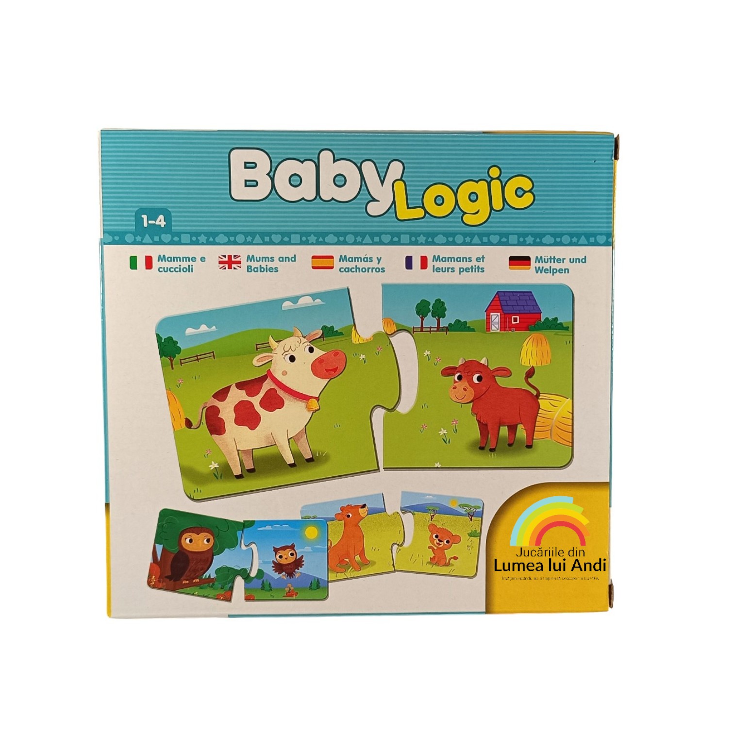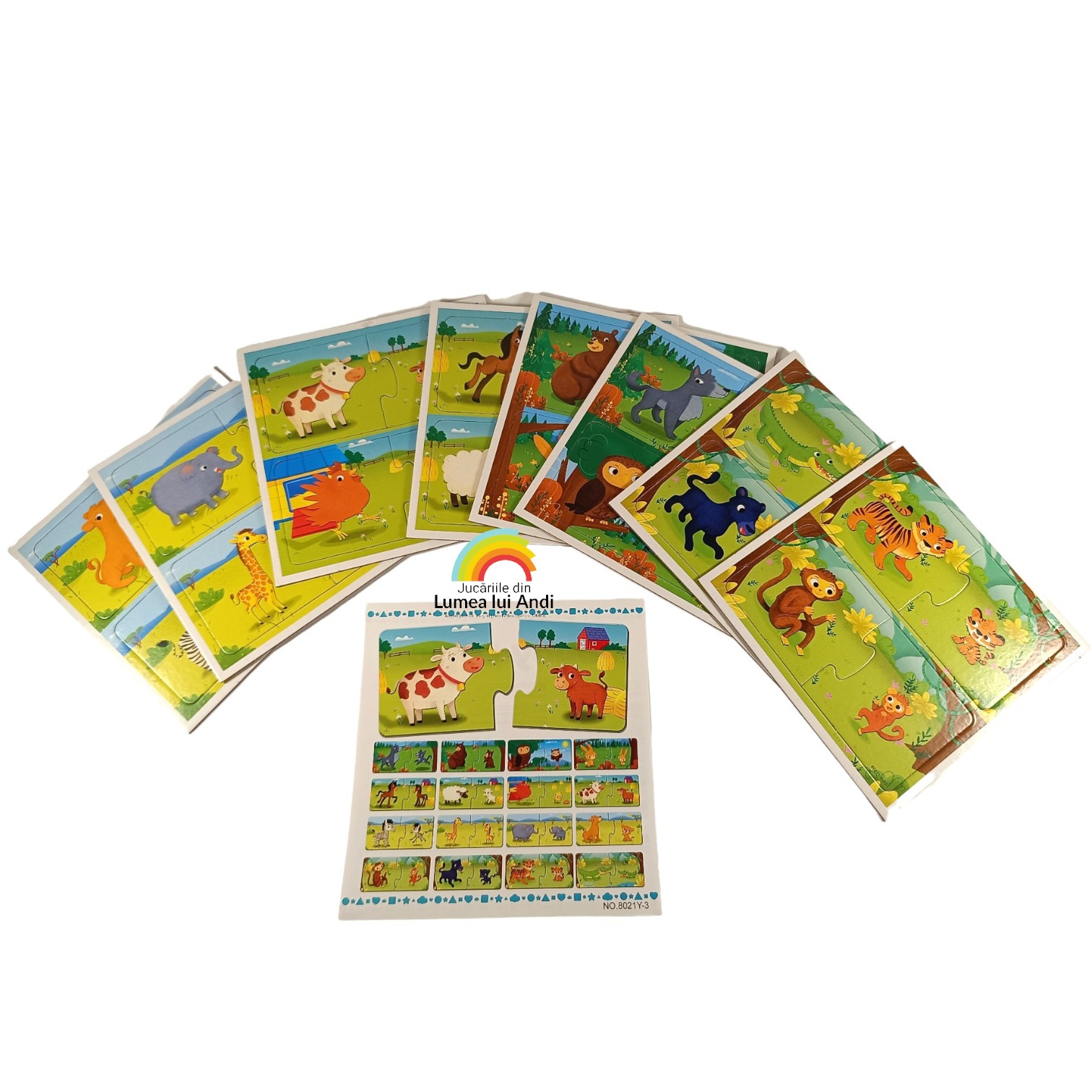 Acest joc numit și „Primul puzzle al bebelușului” conține 16 puzzle-uri de asociere, din câte 2 piese fiecare pentru a asocia mama si puiul. Piesele sunt din carton gros și de dimensiuni mari, iar copilașii le pot apuca cu ușurință