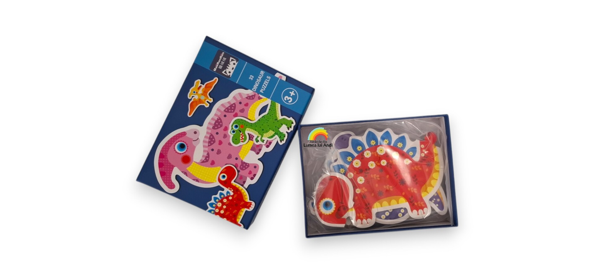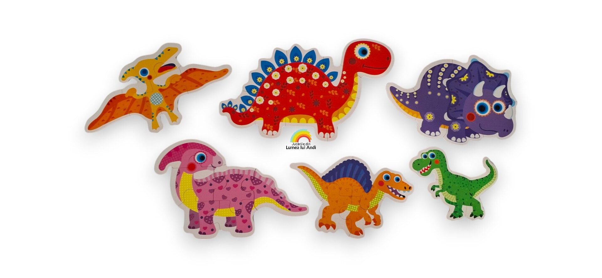Setul conține 6 puzzle-uri diferite cu tematica speciilor de dinozauri , cu grade diferite de dificultate, pentru a putea învăța și evolua treptat: