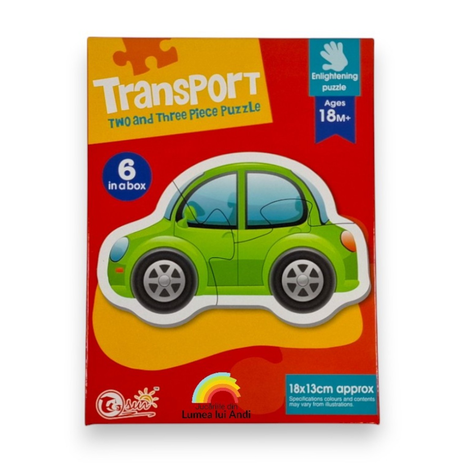 Este un puzzle pentru bebeluși care se poate folosi începând cu vârsta de 18 luni și conține un număr total de 15 piese pe care cei mici trebuie să le asocieze corespunzător pentru a forma simpaticele mijloace de transport.