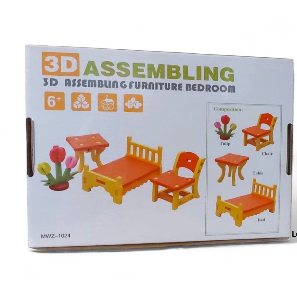 Acest set de mobilier din lemn este destinat pentru căsuțele de păpuși, fiind potrivit ca și joc de rol, ce poate fi jucat în mai multe persoane sau pentru joacă individuală. Acesta ajută la dezvoltarea abilităților motrice și de comunicare, creativității și atenției.