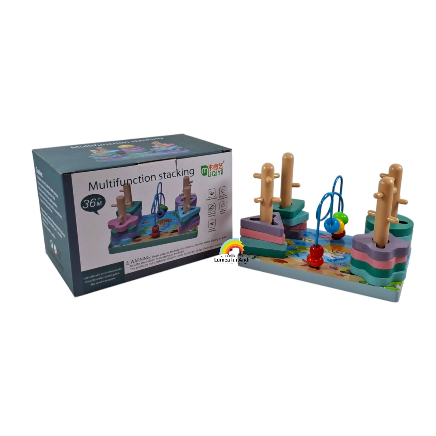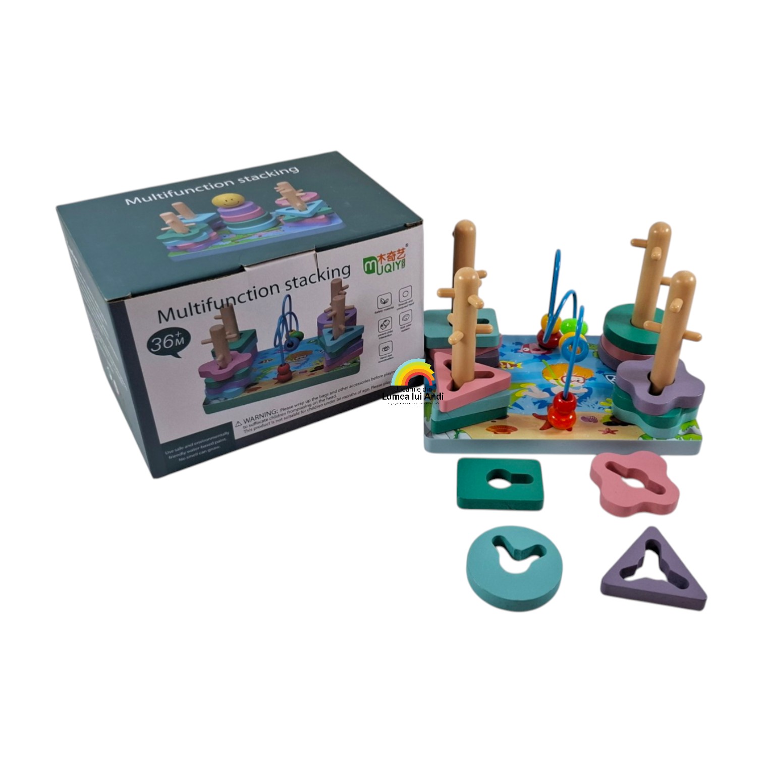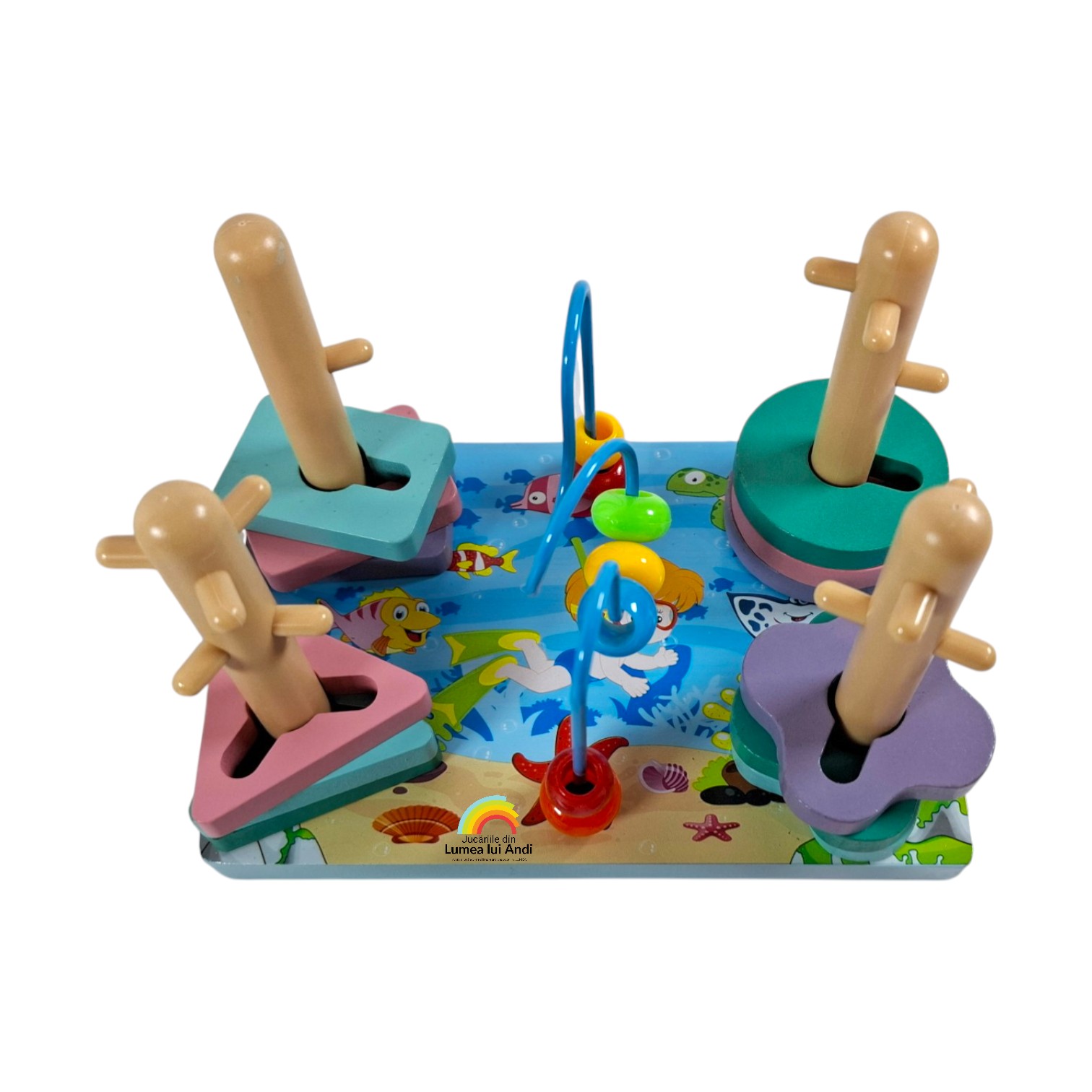 Sortator de forme cu 5 coloane și piedici – model cu labirint de motricitate