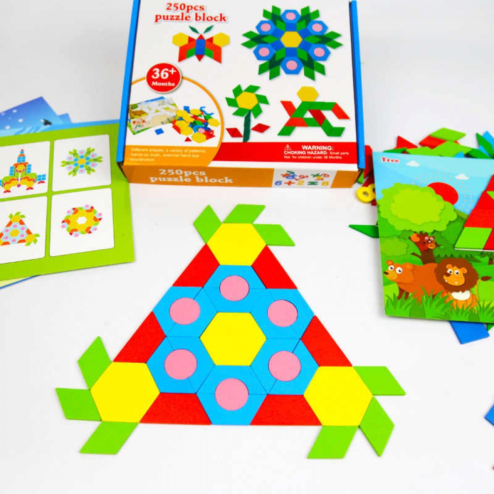 Tangram din lemn cu 250 piese – forme și cifre