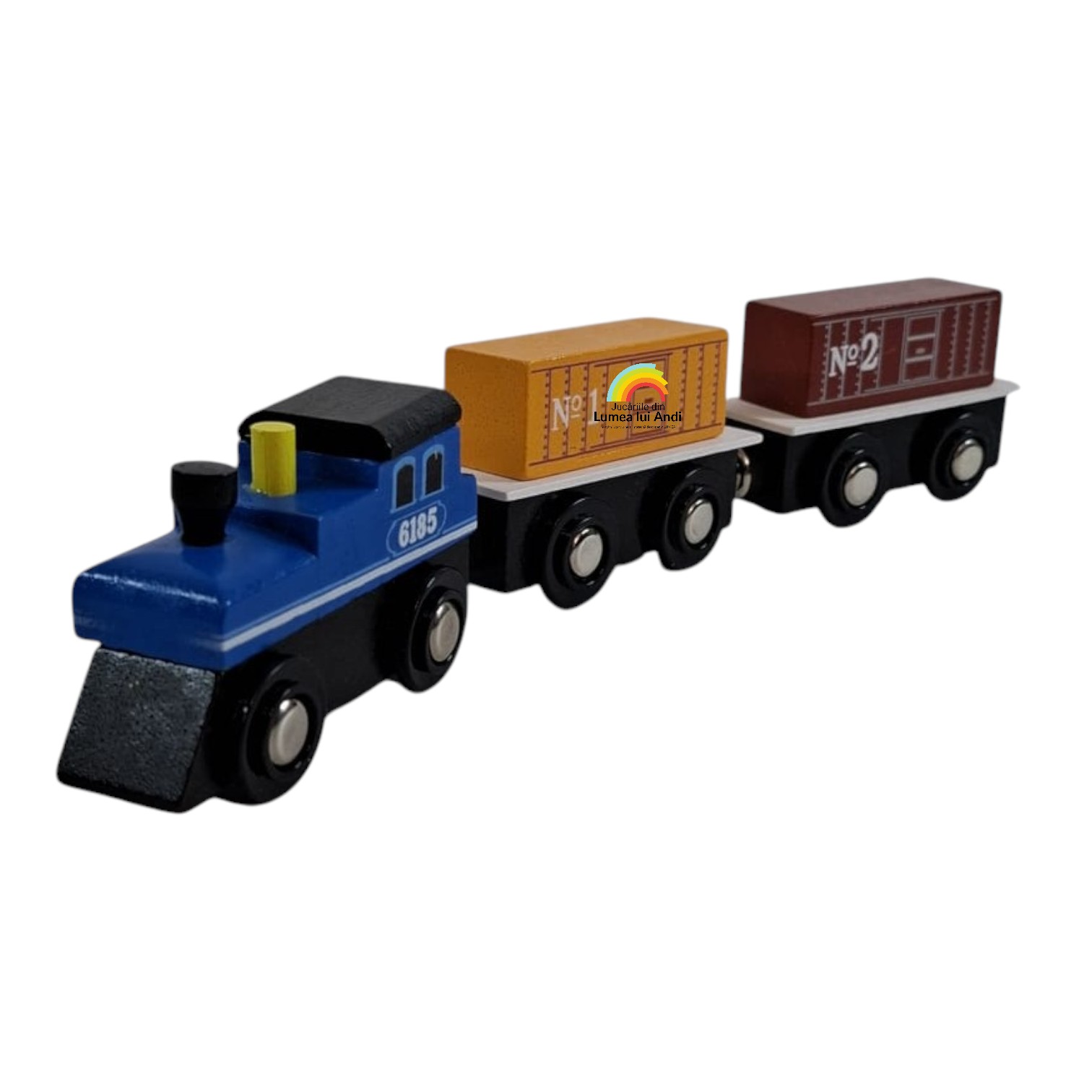 Trenuleț din lemn cu magnet – model cu locomotiva albastră